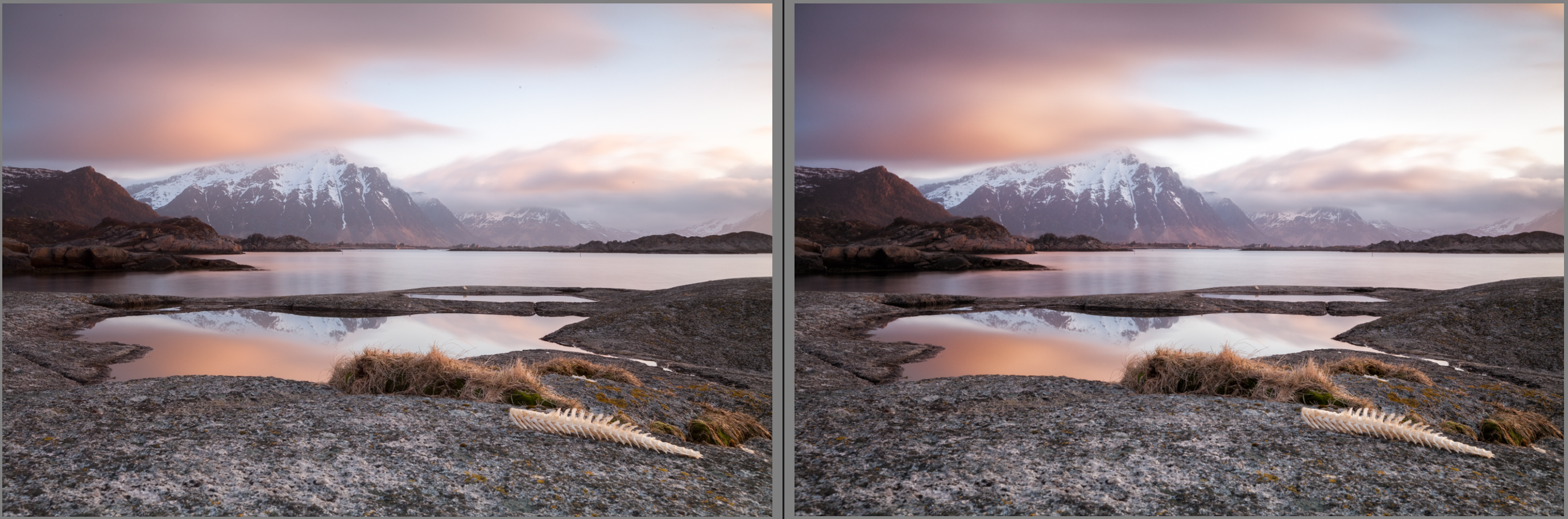 Hier siehst du die Bearbeitungsschritte. Da ist nichts mit PS reingebastelt was nicht da war. Die Tipps mit Langzeitbelichtung waren dagegen goldrichtig, das war eine Aufnahme mit 30 Sekunden bei F18, 35mm und ISO200. Die Fischgräten lagen da überall rum. Wir waren kurz hinter einem kleinen Fischereihafen und Adler sowie diverse Seevögel sind auf den Lofoten (Nordnorwegen) jetzt keine Seltenheit.