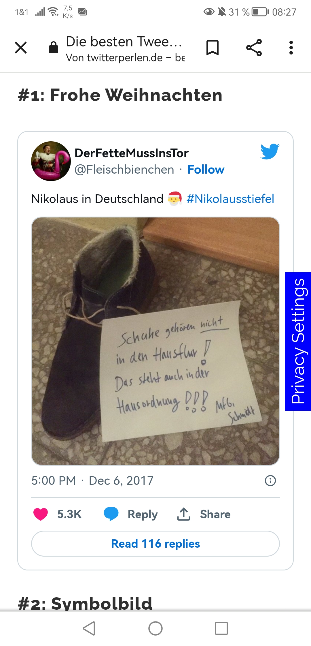 Das, was ich hier typisch deutsch finde, ist dieses Thema an sich. Um das jedoch in ein Bild zu packen, ohne einfach nur einen Screenshot zu fotografieren, dazu ist mir nichts eingefallen. Liegt wohl auch daran, dass mir das Thema mißfällt, und ich mich irgendwie dagegen sperre.