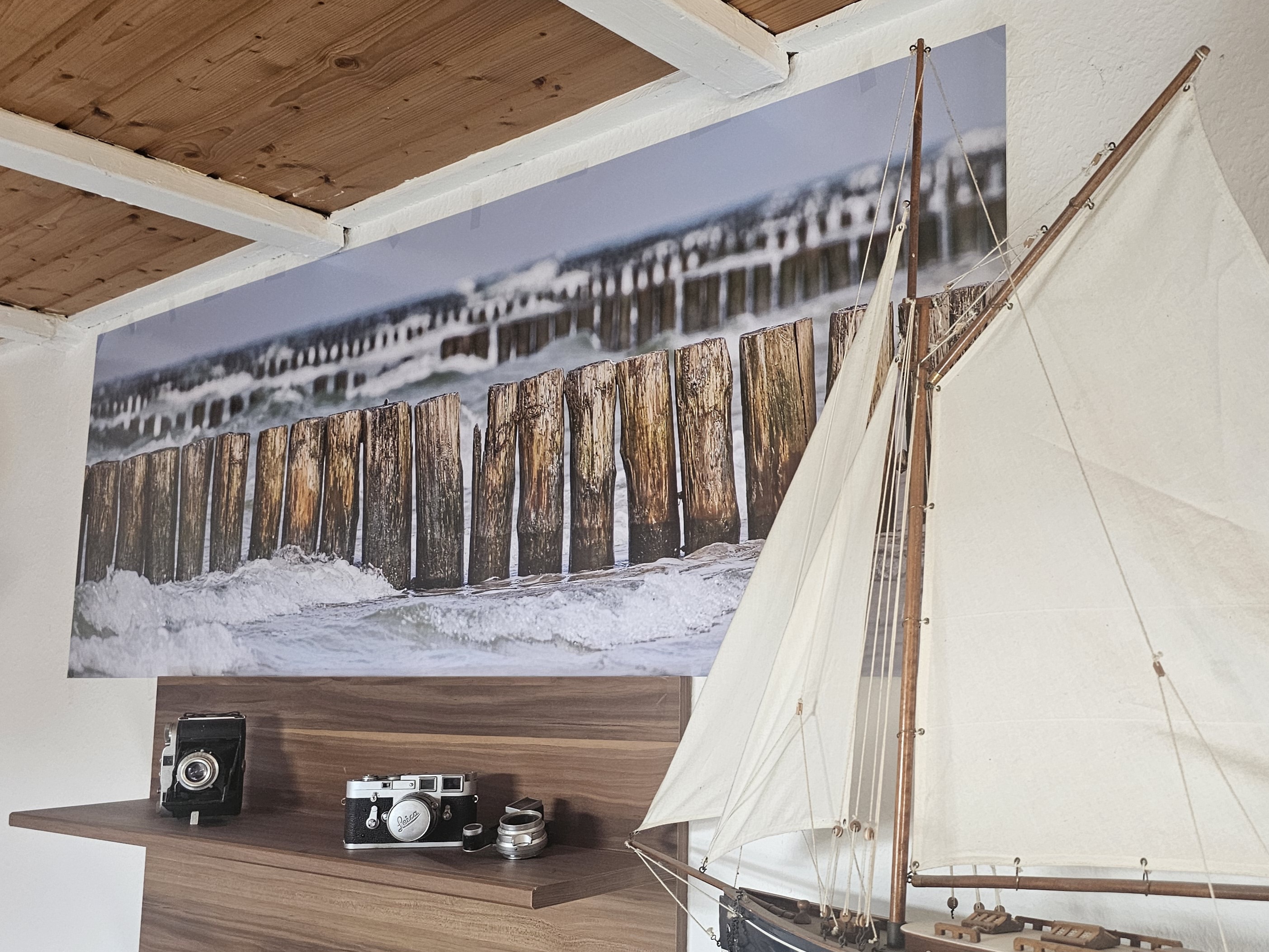 Cool! Danke, dass du uns zeigst wo dein Bild hängt. Mit dem Holzregal und dem Modell sieht das sehr stimmig aus 👍