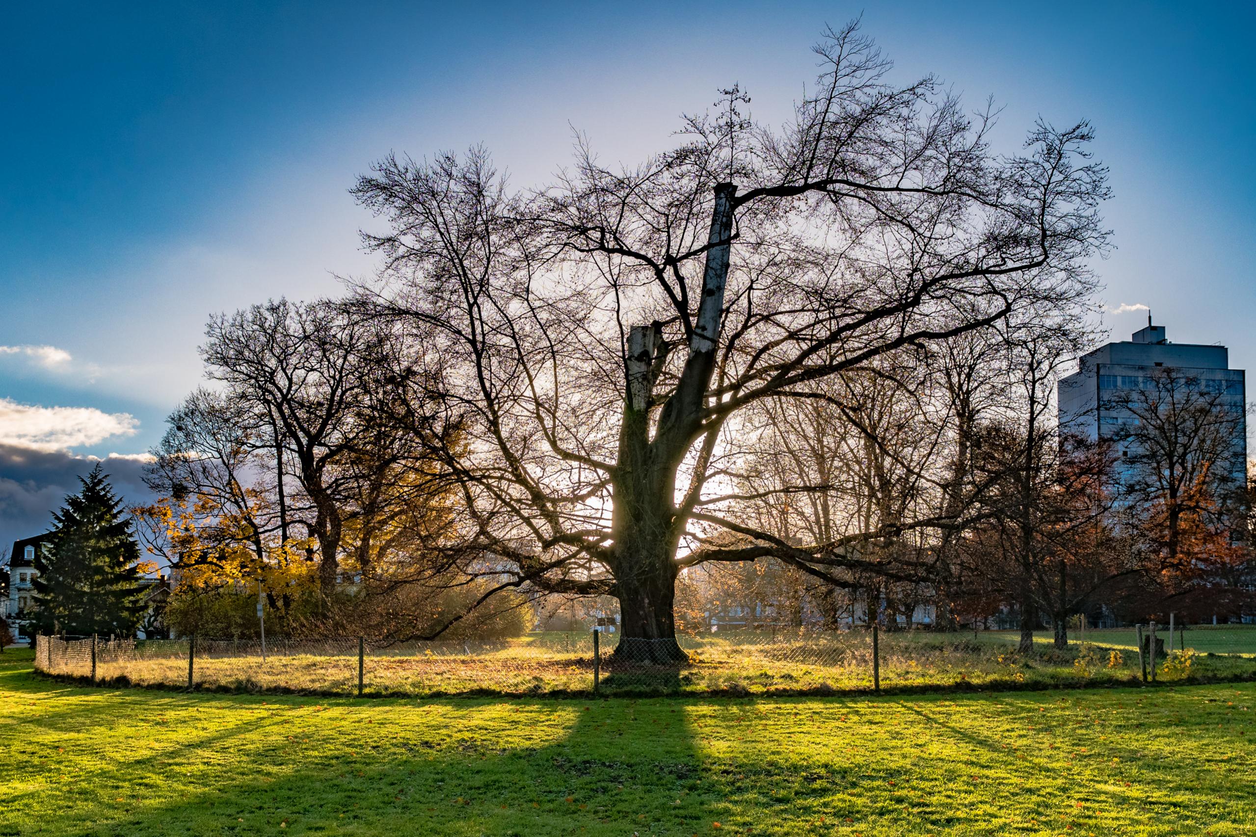 Bei dem Bild habe ich die Tiefen stark angehoben und die Lichter runtergeregelt. Der Bereich des "Heiligenscheins" ist aber nicht gesondert aufgehellt worden. Im Gegenteil: Durch das Absenken der Lichter ist er viel kleiner und dunkler. Die Sonne ist halt ziemlich hell.