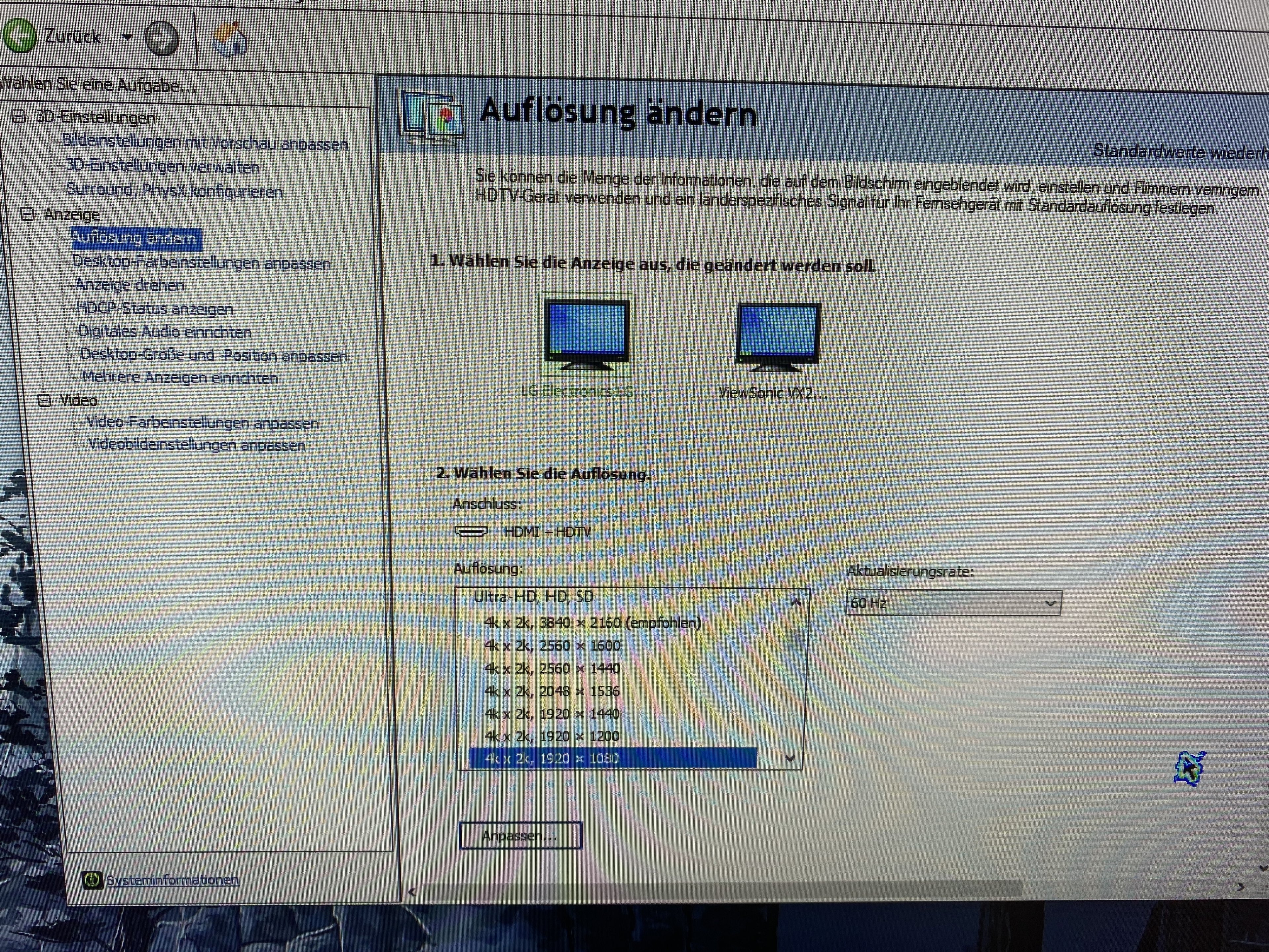 Ich will mit meinen Monitor auf einer Auflösung von 1920x1080 mit 144hz spiele das bekomme ich aber nicht hin weil die standard Einstellung 4K x 2K 1920x1080 ist mit 60hz , 60 hz will ich aber natürlich nicht und wenn ich manuell versuche die Auflösung einzugeben dann komme ich immer wieder da auf 4K x 2K 1920x1080 zurück