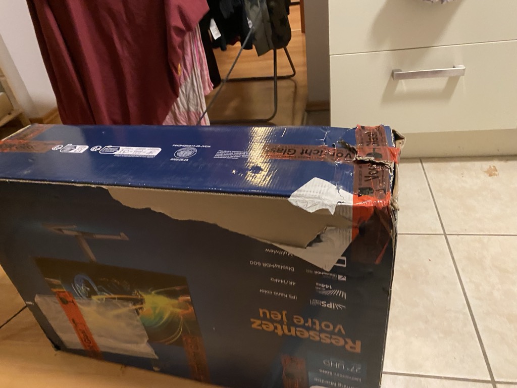 Der Monitor kam im übrigen nach seiner langen Reise so bei mir an.