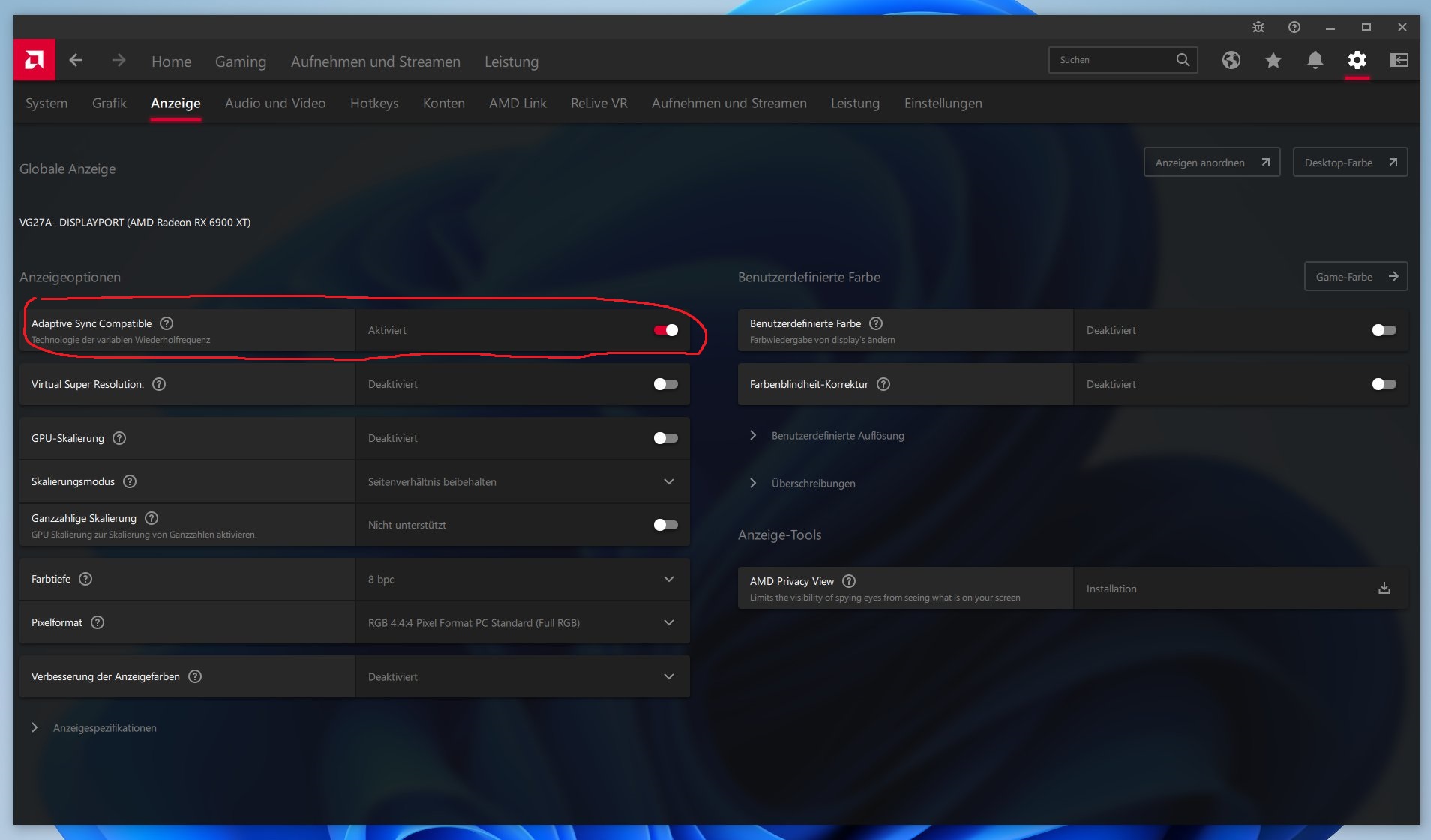 Die FPS-Anzeige (bzw. sollte es nicht eine Anzeige sein mit wieviel hz der Monitor läuft stimmt einfach nicht. Stellt man jedoch in Windows auf z.b 60Hz um werden diese auch angezeigt. Somit stellt sich mir die Frage ob mein Adaptive Sync bzw. Freesync (RX 6900XT) überhaupt laufen und der Monitor nicht stumpf einfach immer 144hz anzeigt.