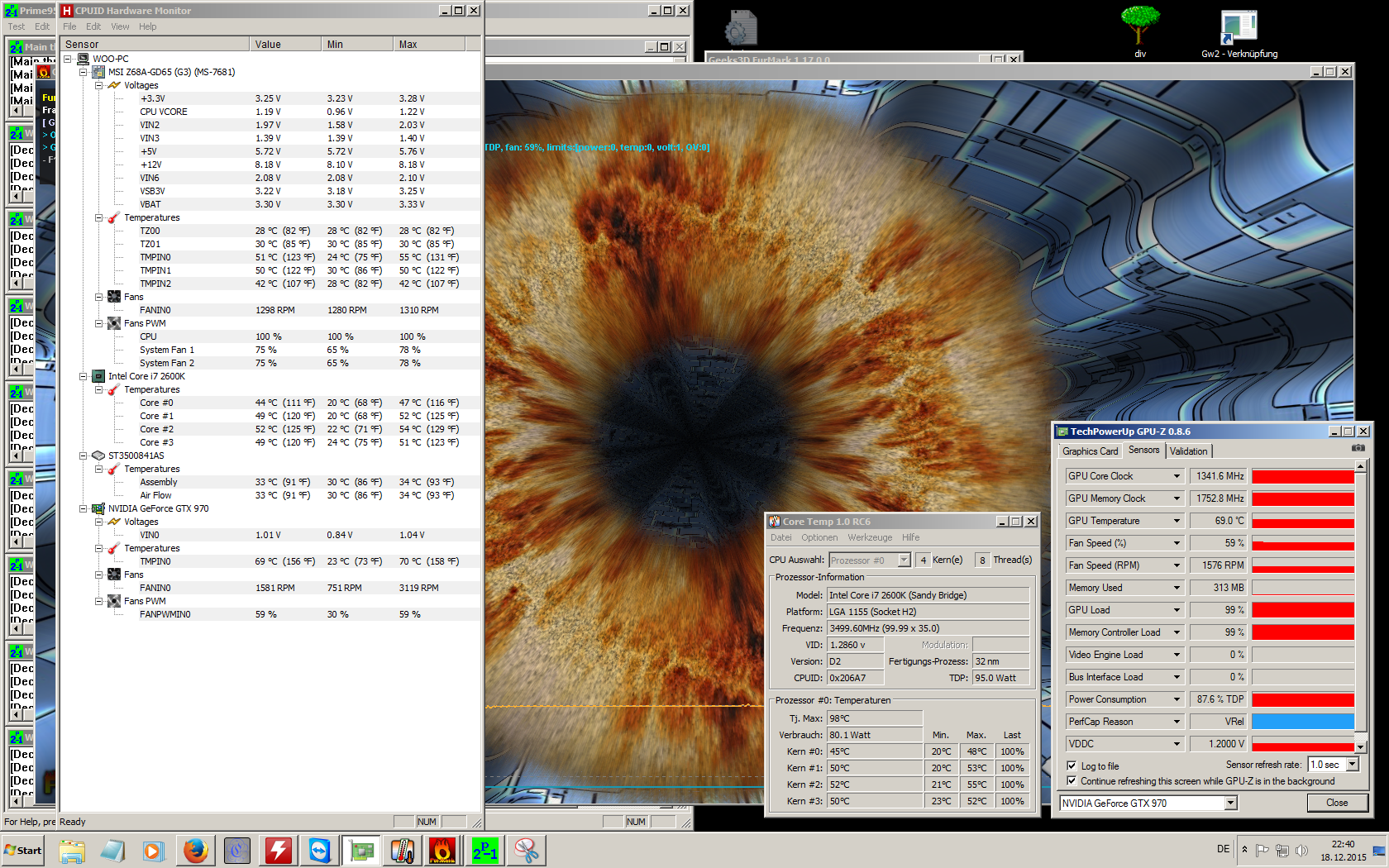 Wenn der/die Monitor/Grafikkarte abschaltet höre ich eine Fehlermeldung, um die zu sehen hab ich bevor ich den Benchmark gestartet habe, mein Handy mit meinen PC per Teamviewer verbunden und nach geschaut was passiert.