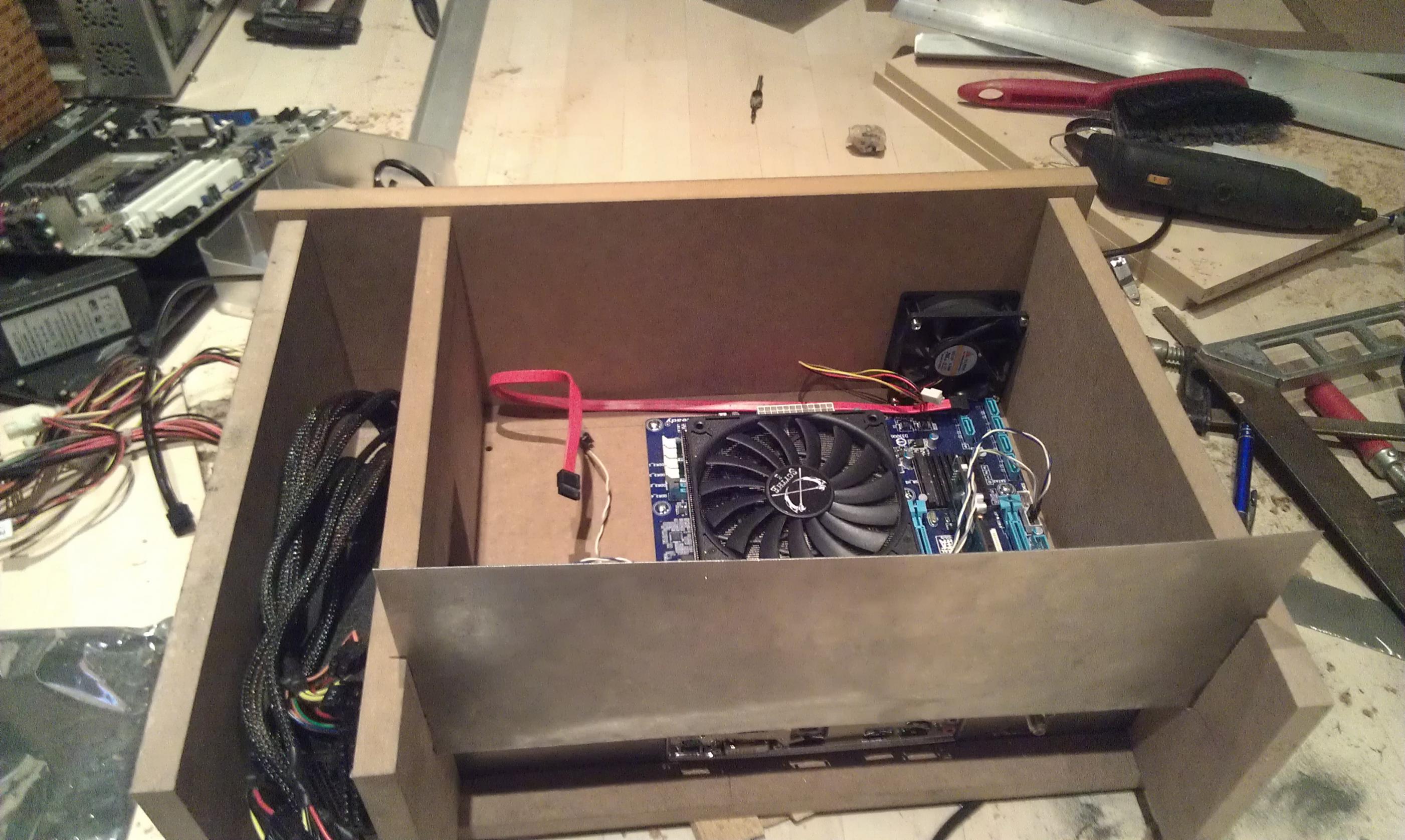 ich bau mir gerade ein HTPC Gehäuse. Am Ende soll es wie ein normales Schubfach aussehen. Es soll auch noch ein altes LCD Display von einem Laptop verbaut werden, das in dem Schubfach integriert ist. Der horizontale Schub des LCD wird über zwei Linearlager und zwei Wellen erfolgen. So wie auf dem Bild