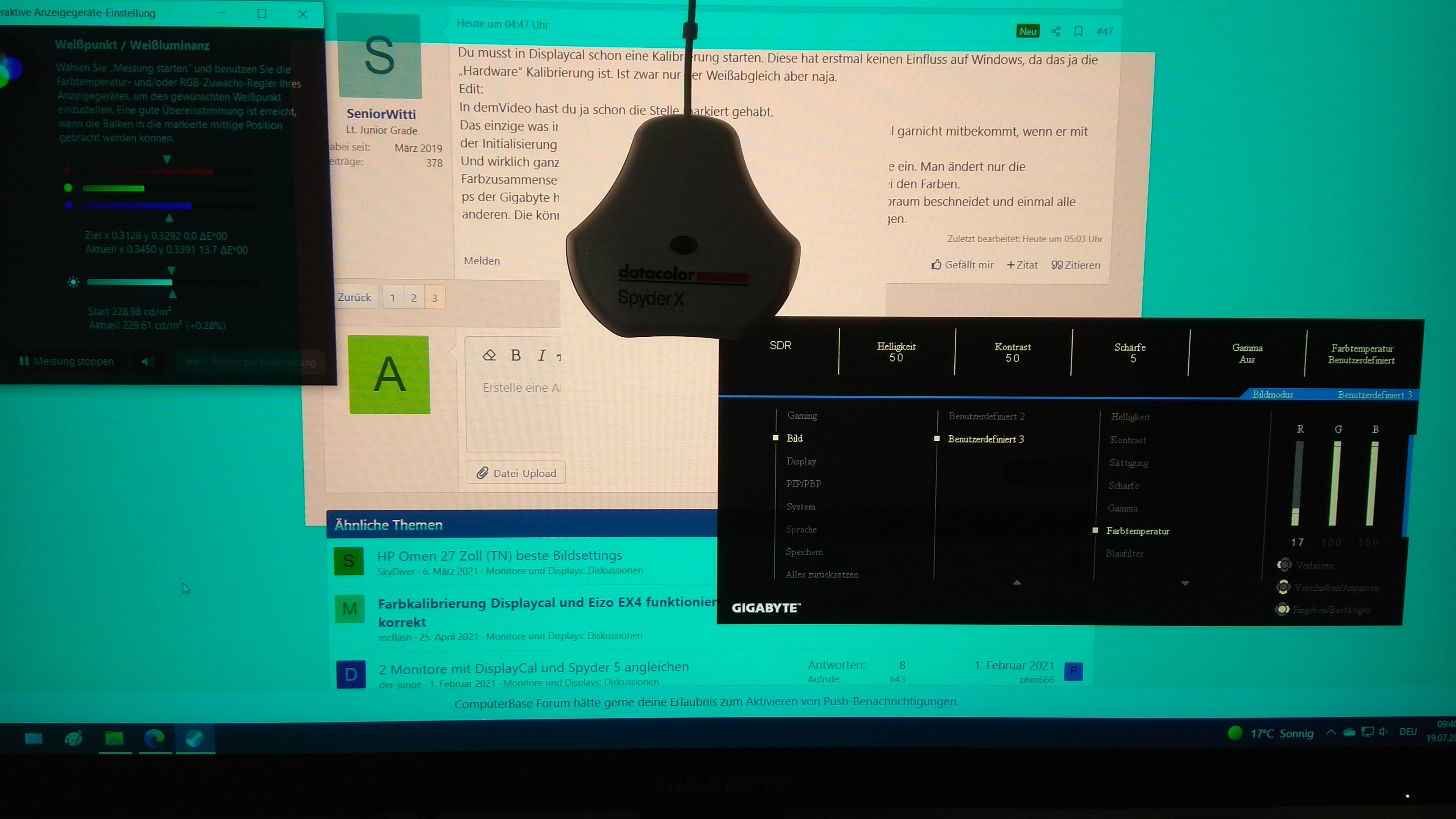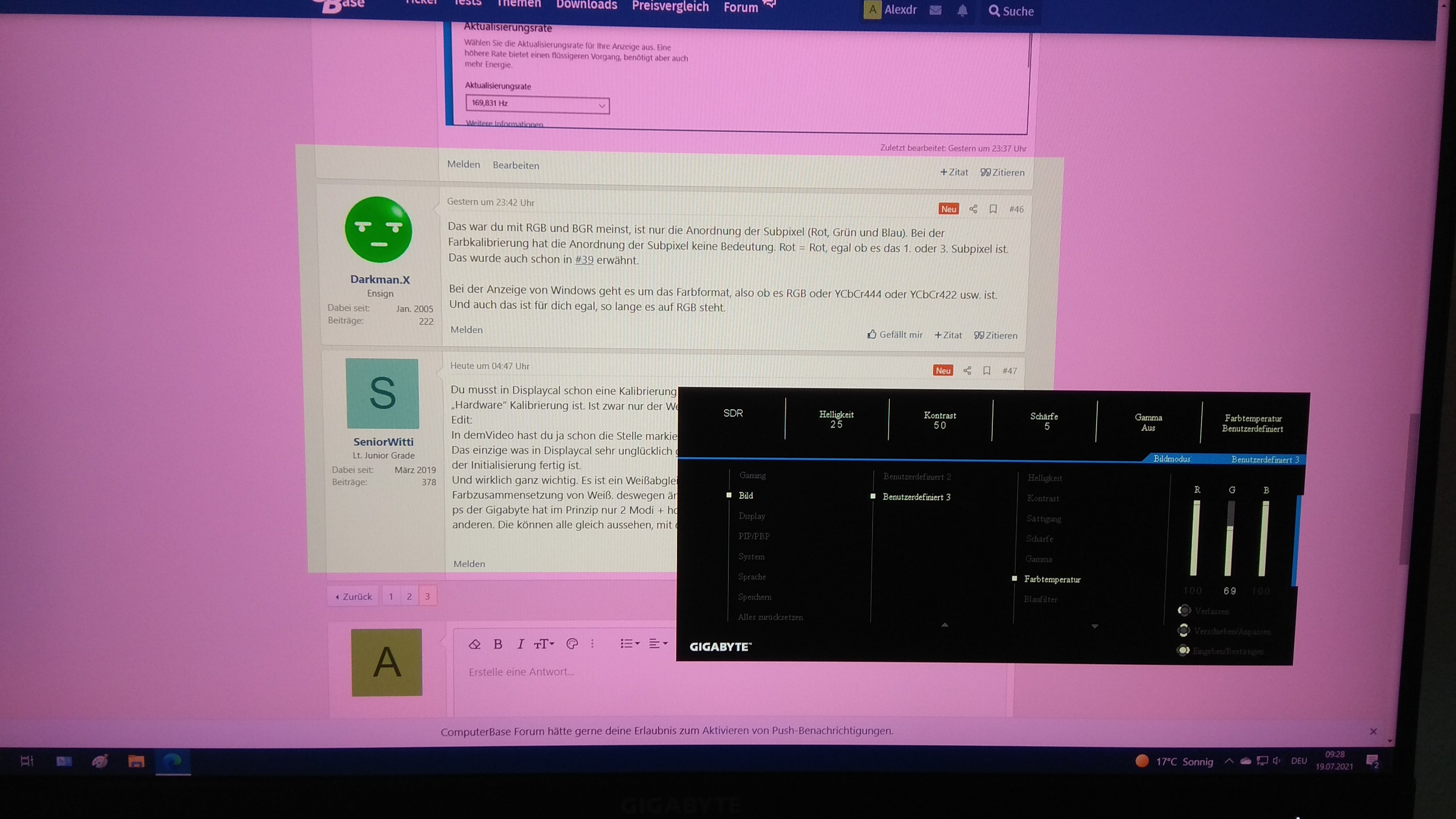 Ansonsten kann ich dort die R G B unter Verstärkung finden (default 100%) und Verschiebung (default 50%) finden. Unter Farbton und Sättigung gibt es da neben RGB auch noch CMY, alle untereinander und bei 50%.