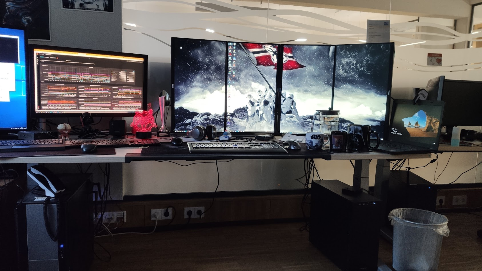 Die letzen Jahre habe ich (bis zum Pandemiebeginn) an 4 Hockant 25" mit WQHD im Büro gesessen. Der dicke Rand war in der Mitte und die Fenster passend angeordnet - so hat das jeweils bei den Äußeren nicht gestört bzw hat man sich da im Laufe der Jahre dran gewöhnt.