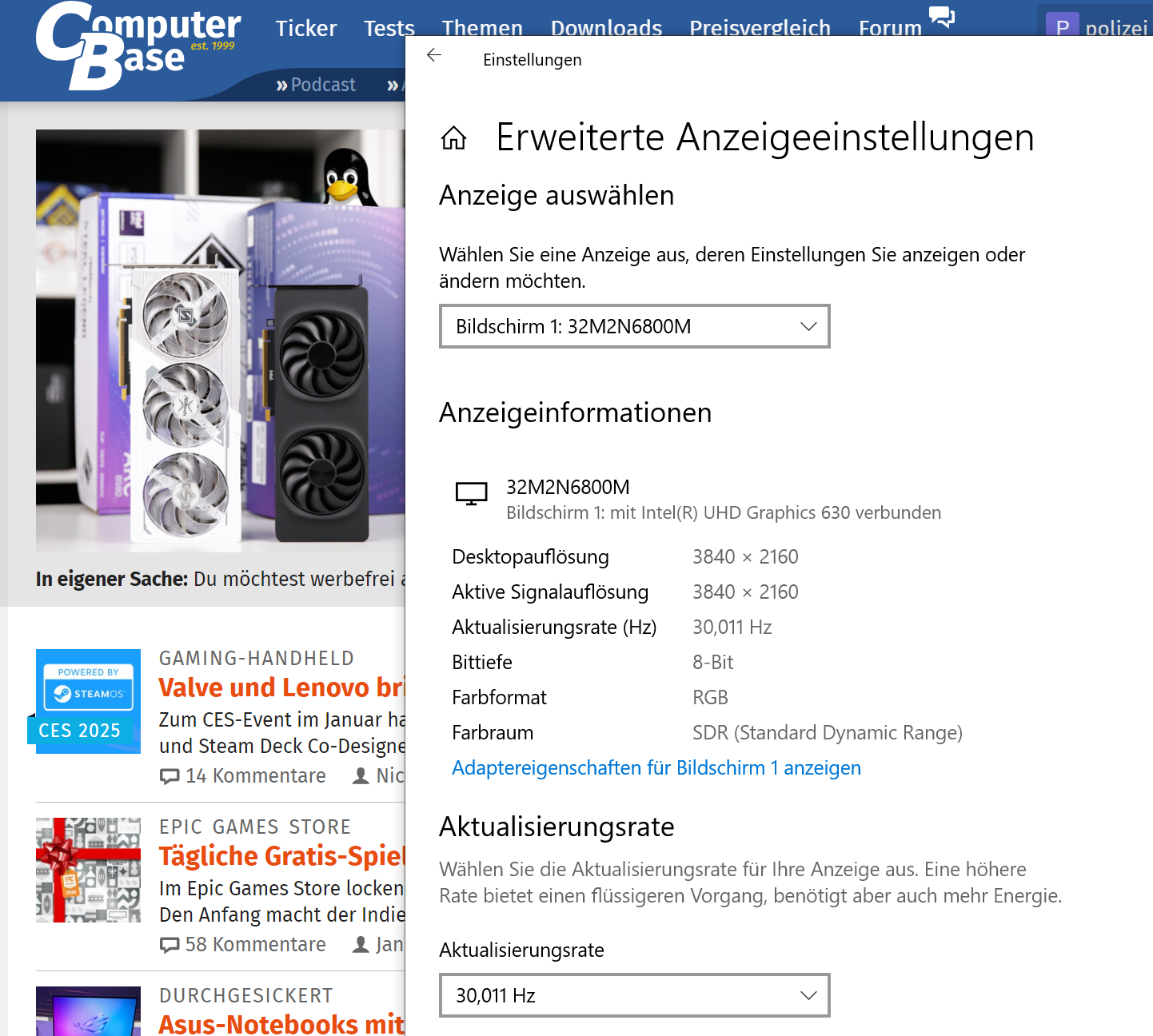 Und manchmal unterstützt die iGPU zwar eine bestimmte Auflösung und Bildwiederholfrequenz, aber das Mainboard nicht. Meine Eltern haben im Wohnzimmer einen alten Dell Optiplex im Schrank stehen, der 4K/60 nicht schafft, obwohl der alte Core i5 das eigentlich sollte. Auch mit einem passenden Kabel nicht.