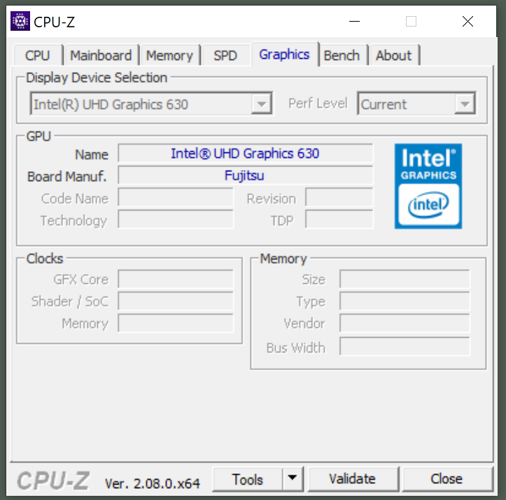 Das Probem ist die "Grafikkarte", Intel UHD Graphics 630 (GT2).