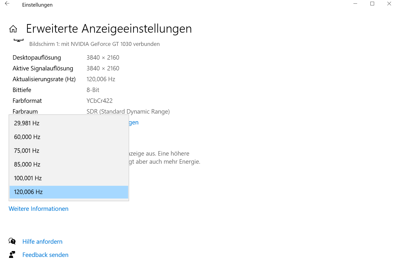 Die GT 1030 hat keinen Modus für "4k144"