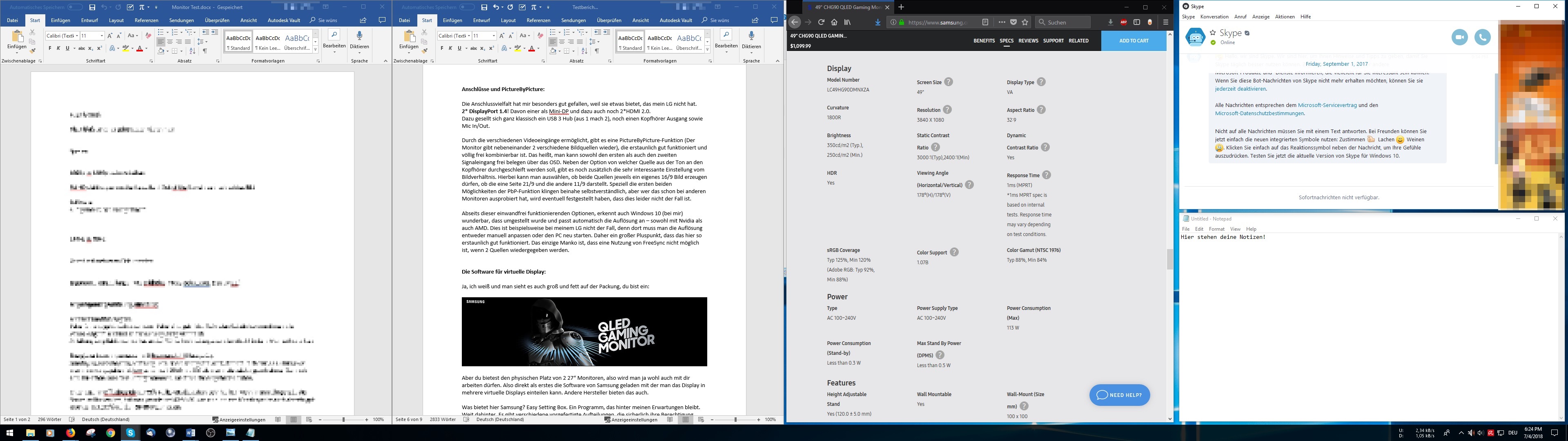 ich habe einen curved Monitor von Dell und nutze dort die Dell Manage Software, mit der man den Bildschirm ja in verschiedene Flächen usw aufteilen kann und Fenster automatisch in der Größe angepasst werden.
