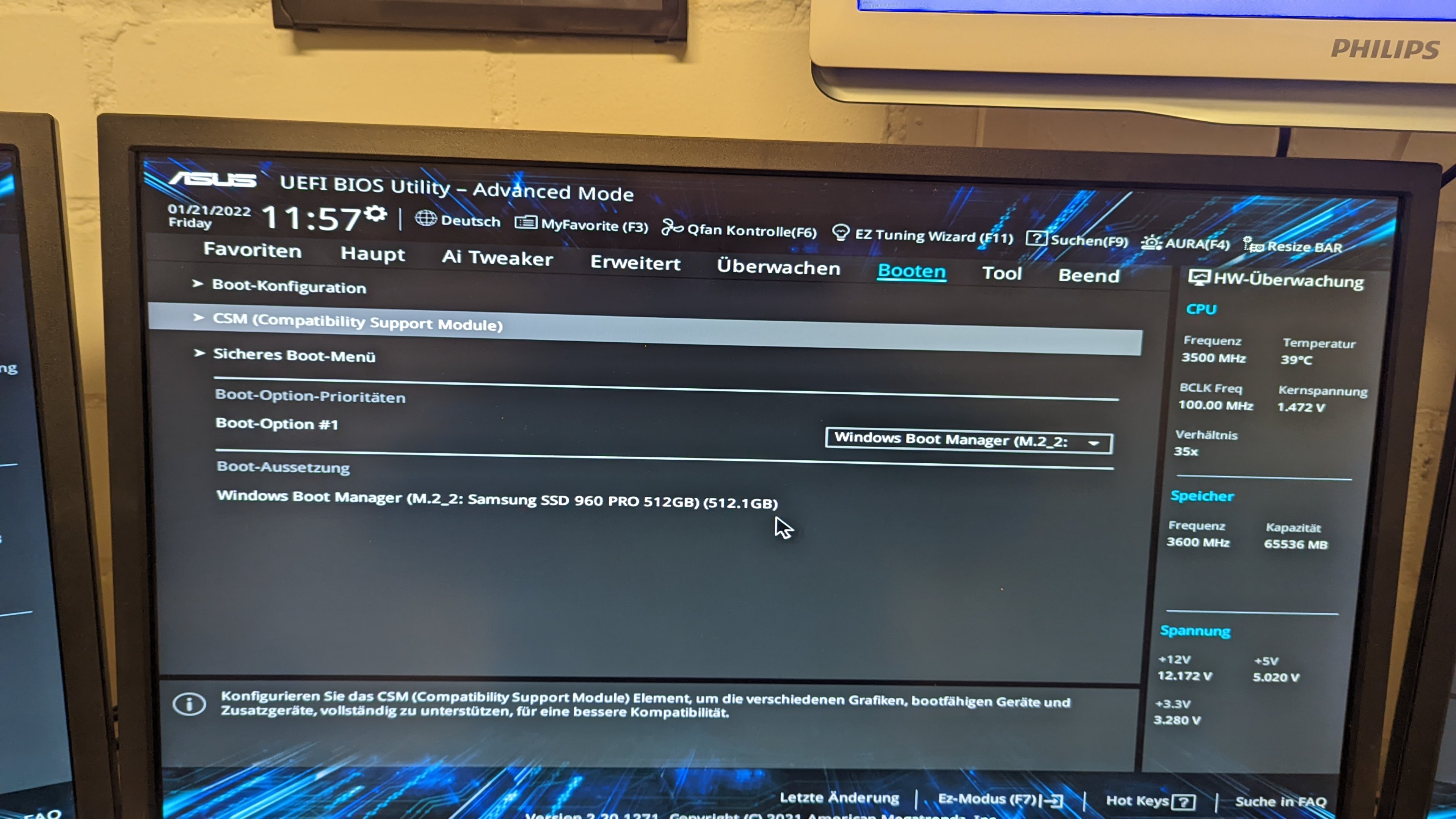Das mußt Du jetzt mal genauer erläutern, wie CSM (was an sich den Legacy Mode im Bios aktiviert) das BIOS Startverhalten auf der Grafikkarte beeinflußen soll.svenscherner schrieb:Im BIOS gibt es einen Menüpunkt namens CSM. Diesen Modus kannst du aktivieren und dann sollte auf allen Ports ein Bild kommen.
