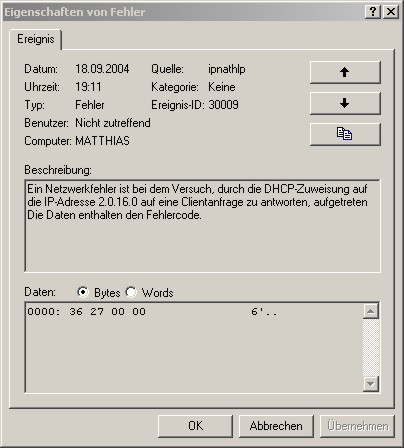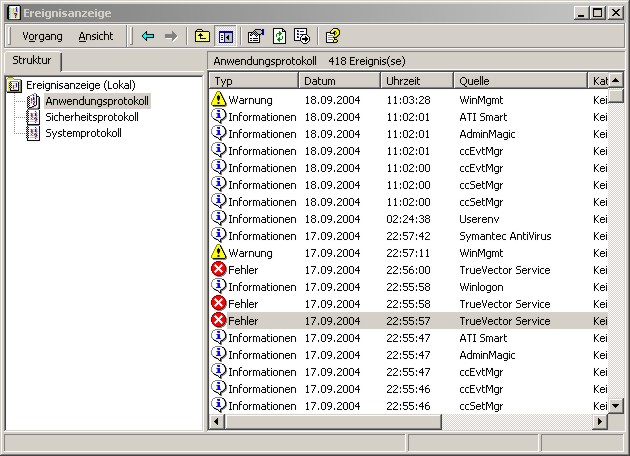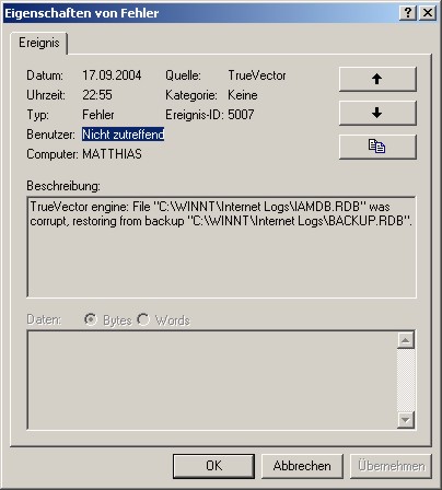 Ich hab hier einige ! drinnen und einige Fehler, die ziemlich genau zur Problemzeit passiert sind. Ich hab auch screenies beigelegt.