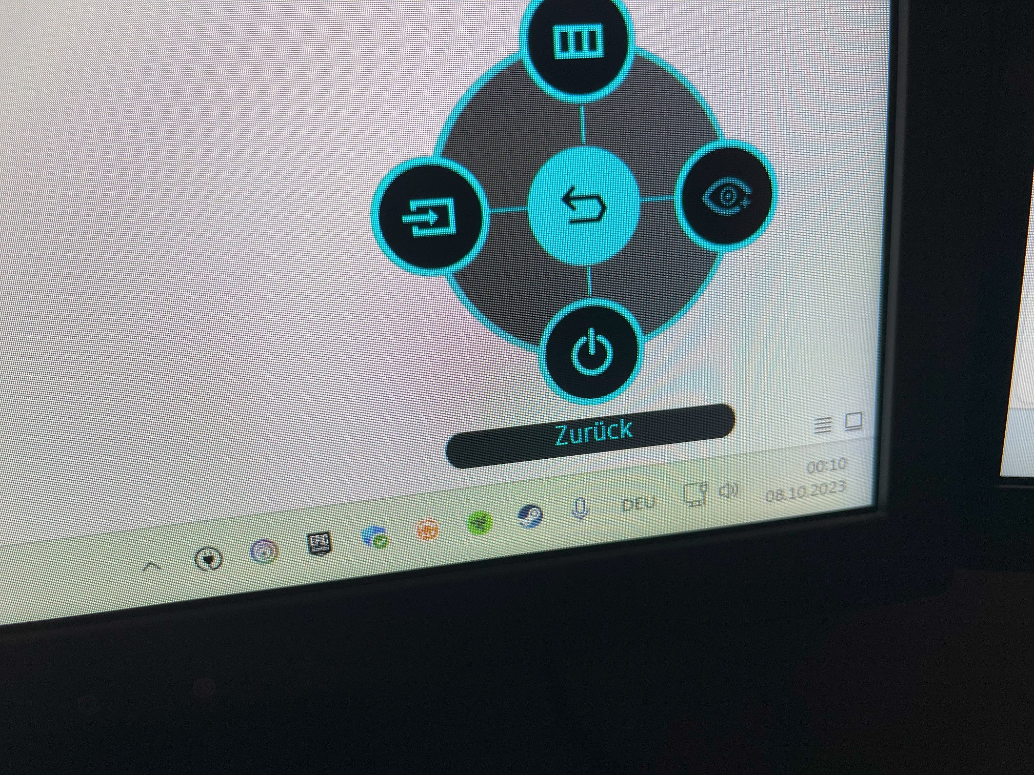 In unregelmäßigen Abständen verschiebt der Monitor das Bild. Meist um ein paar Pixel nach unten und nach rechts (das Datum in der Windows 11 Taskleiste wird zur Hälfte abgeschnitten). Sobald ich den Joystick drücke, damit das Menü öffnet, springt das Bild wieder direkt an die normale Position.