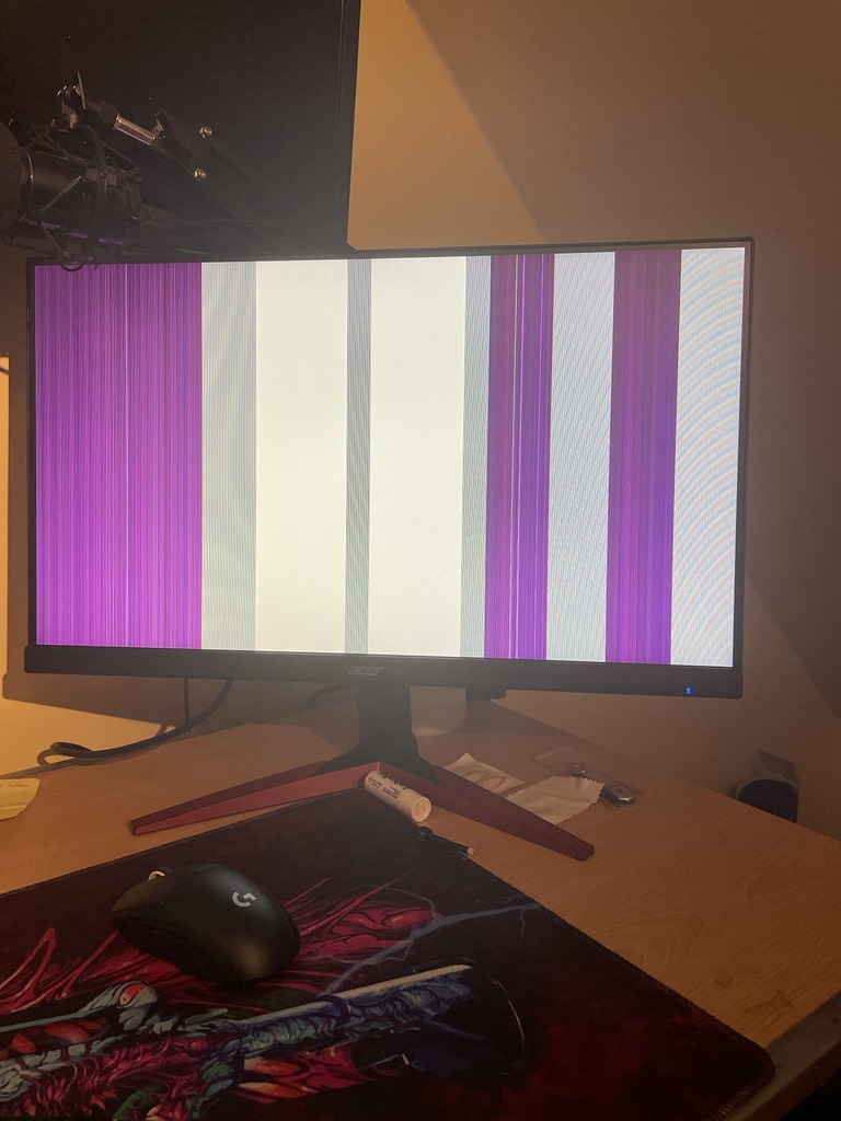 Mein Monitor zeigt seit neuestem nur noch weißes Bild oder Ähnliches (siehe Anhang) an. Woran könnte es liegen? Kann man etwas dagegen tun - vll. mit irgendeiner Software?