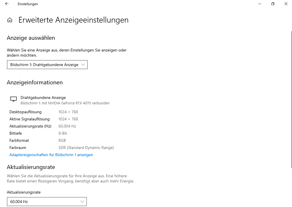 Monitor zeigt kein 1920x1080 mehr an