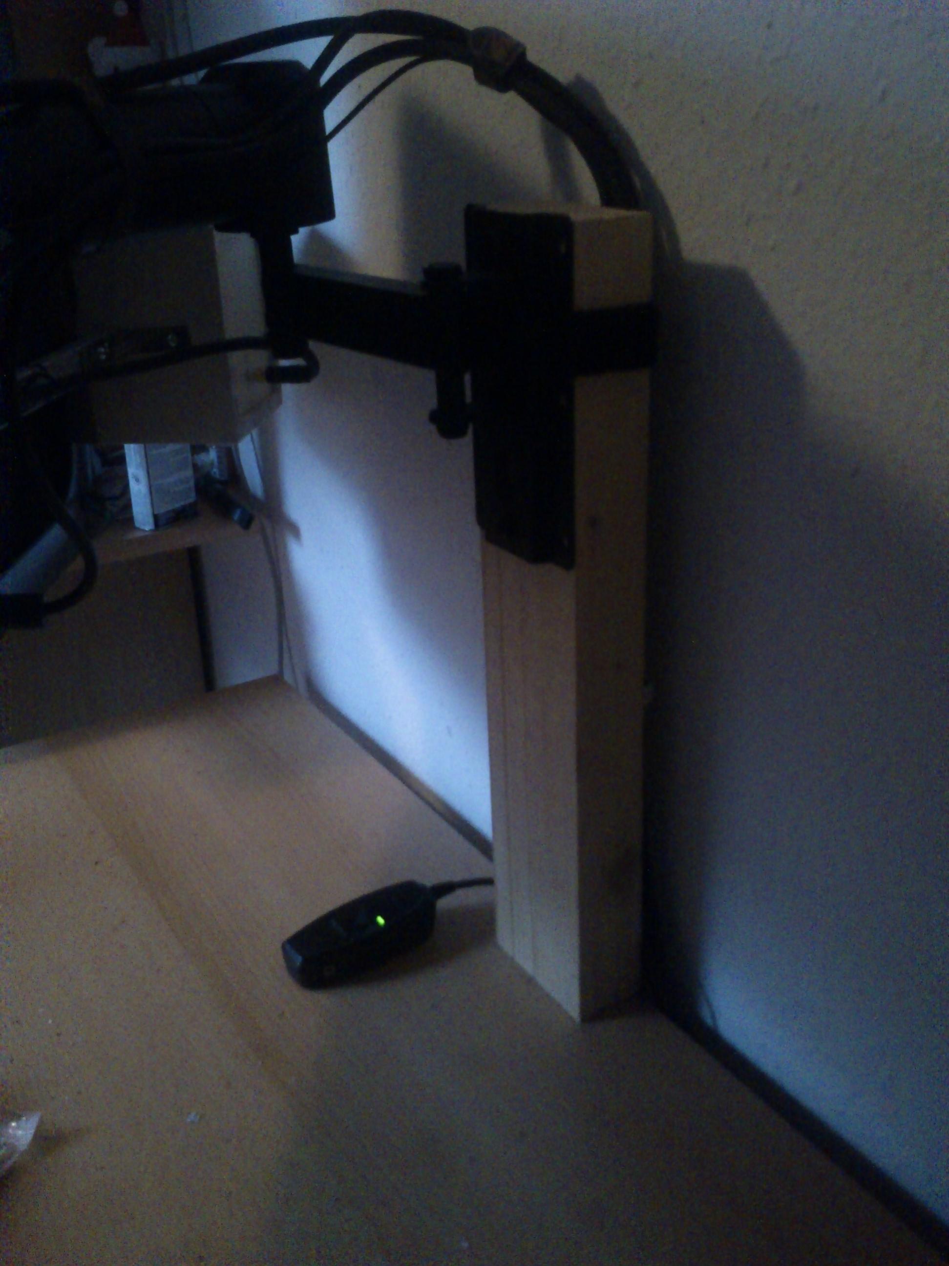 Ich favorisiere eine Befestigung an einem Regal das direkt neben meinem Schreibtisch steht. Dies ist auch die einzige Möglichkeit die ich sehe.