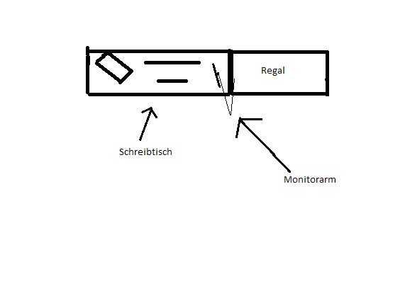 An was ich auch schon gedacht habe, einfach den Monitorarm an einem ausreichend schweren "Holzklotz", welchen ich dann irgendwo auftreiben müsste, zu befestigen und dann einfach in das Regal zu stellen...