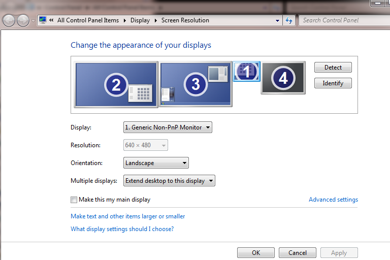 Der Monitor am Displayport hat auf einmal nur eine Auflösung von 640x480, und ich kann diese auch nicht mehr ändern (siehe screenshot)