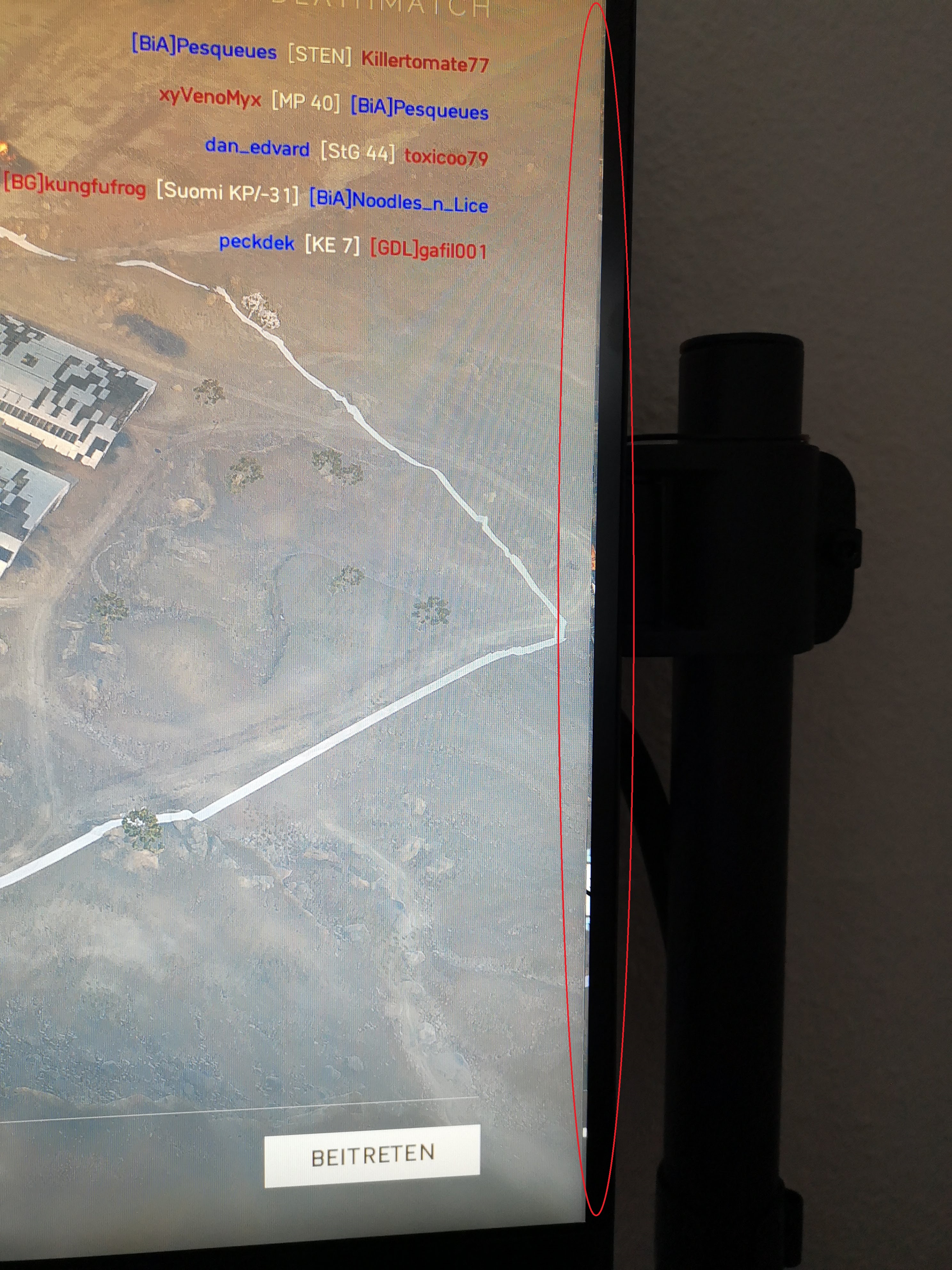 Korrekt konfiguriert ist der Monitor, im Normalfall ist das Bild komplett zentriert und geht bis in alle Ecken. Das Phänomen ist relativ schwierig zu beschreiben, weswegen ich ein paar Fotos gemacht habe, in der Hoffnung ihr könnt damit etwas anfangen.