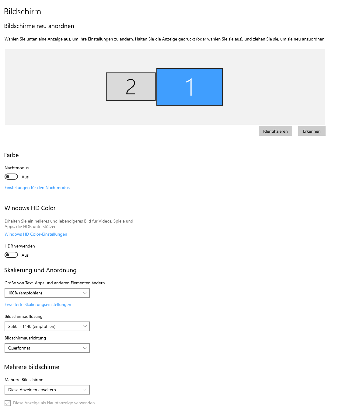 Ich hab mir den LG UltraGear 27GR83Q-B gekauft und will den jetzt als Hauptmonitor nutzen. Als Zweitmonitor links von dem hängt jetzt der ViewSonic VX 2718-P-MHD. Der ViewSonic ist FullHD und der LG WQHD.