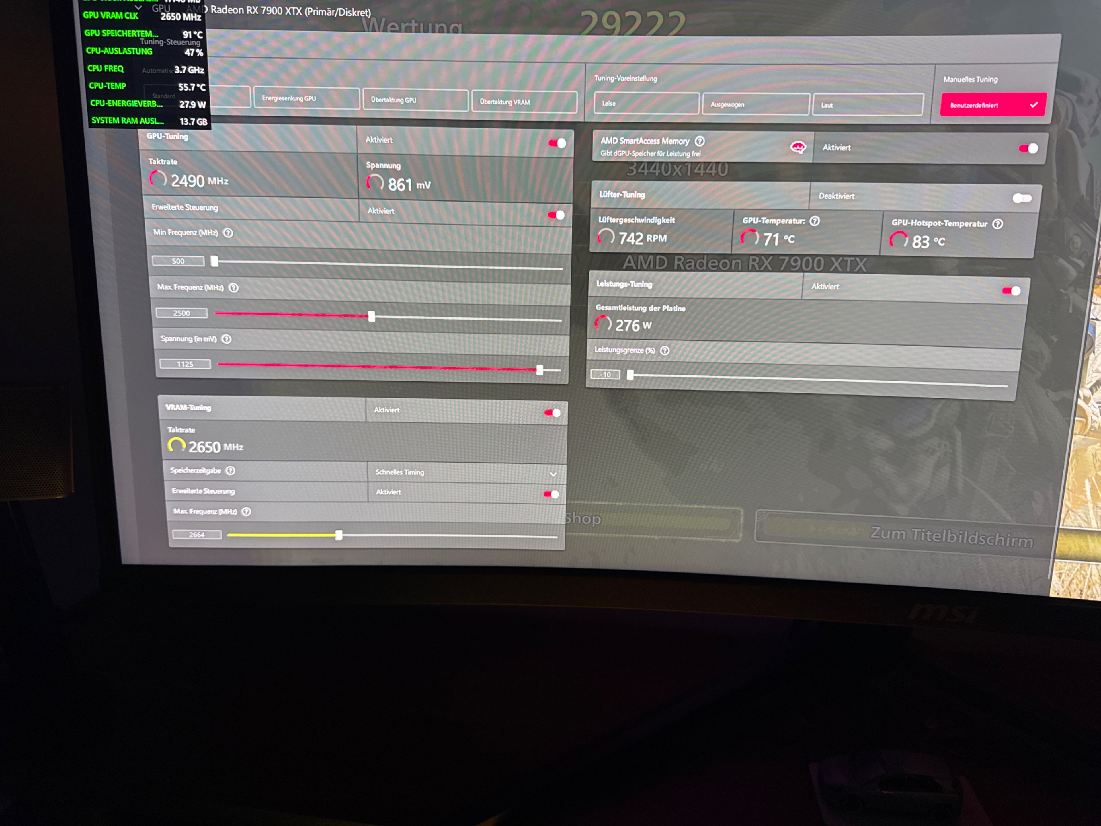 3.440 × 1.440, „Ultra“, Raytracing „Hoch“, Upscaling Quality – AVG-FPS: 115,57Anhang anzeigen 1581122