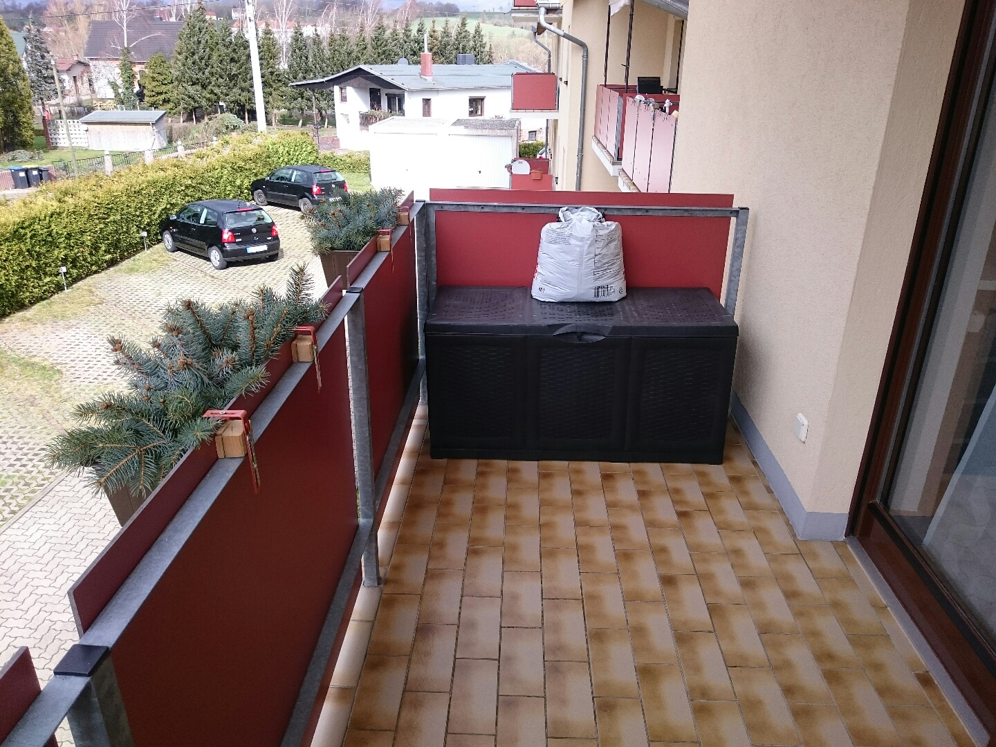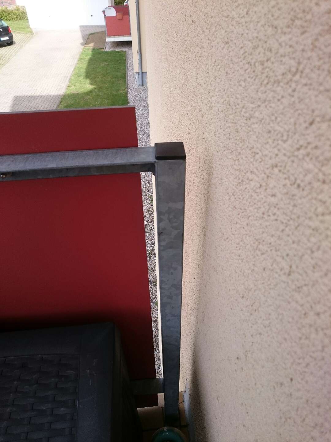 Hinweis, die SAT Schüssel muß nicht vollständig über dem Balkongeländer sein, denn der Einfallwinkel ist schräg.