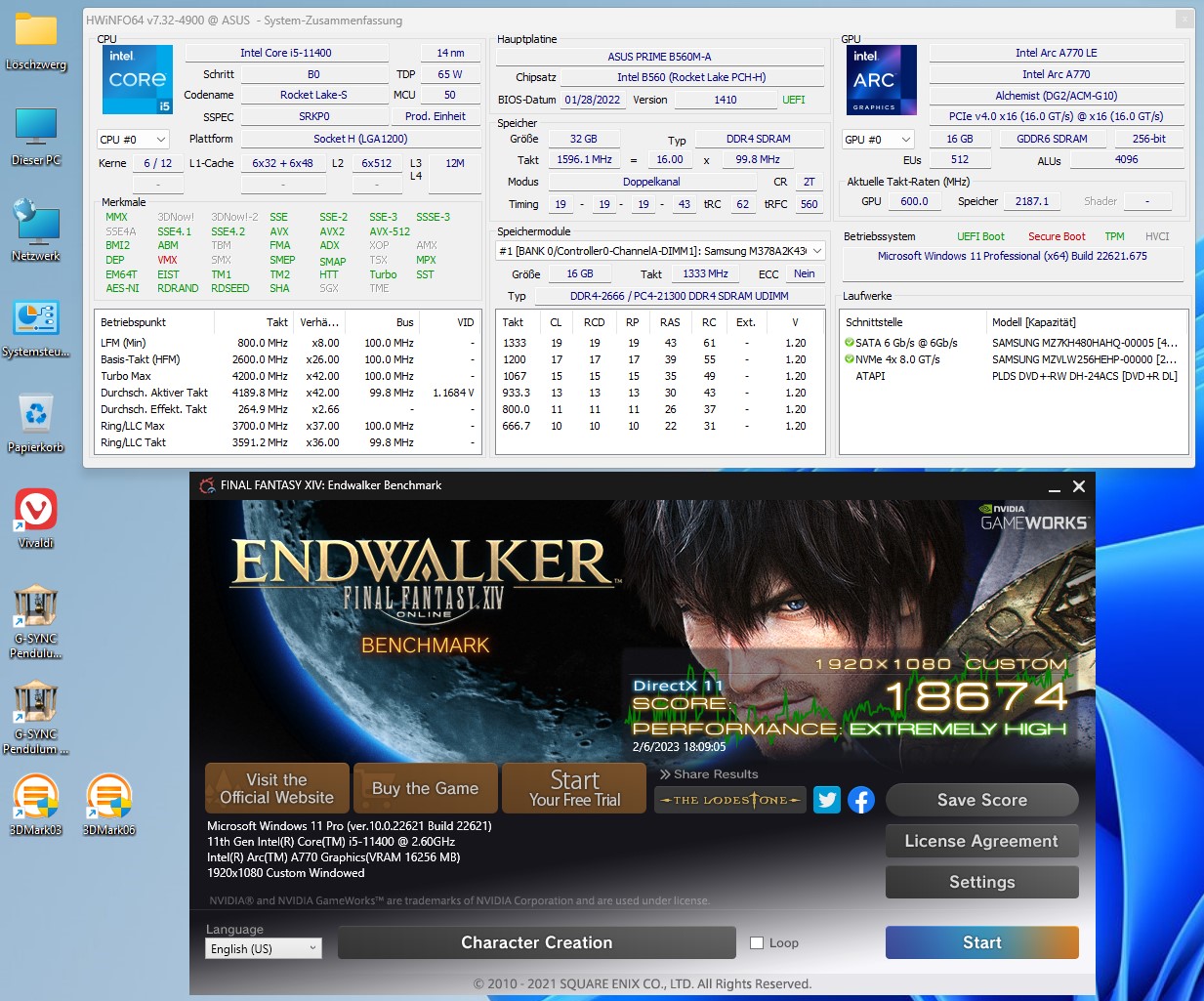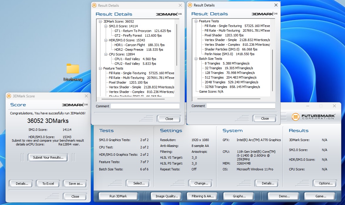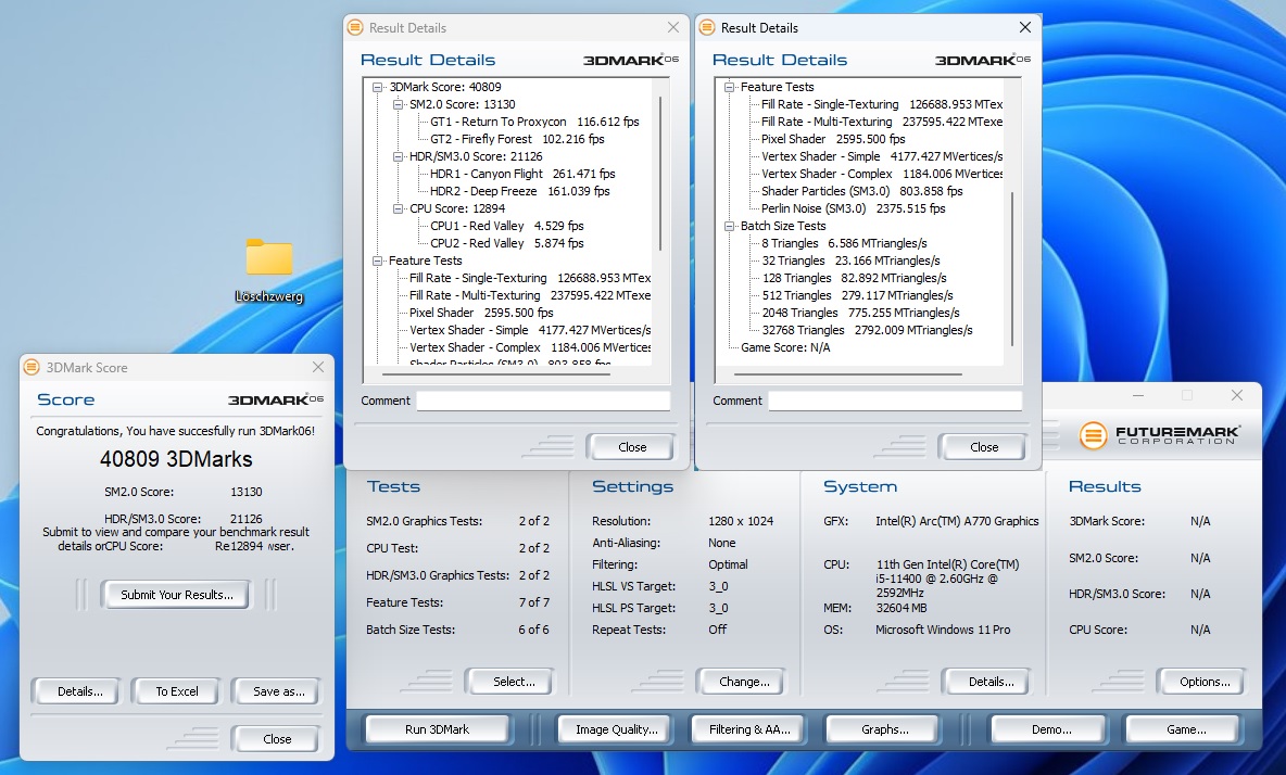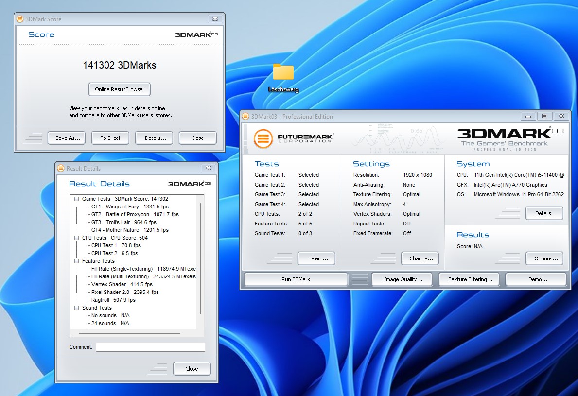 -> Bekomme ich nur sauber mit Auflösungen abseits 1024x768 zum laufen, macht sonst aber keine Probleme. Zu den Ergebnissen und Vergleich mit der Arc A770LE geht es >>hier<<. Nachtrag 15.02.2023: Neue Ergebnisse mit Core i5 13500 >>hier<<.