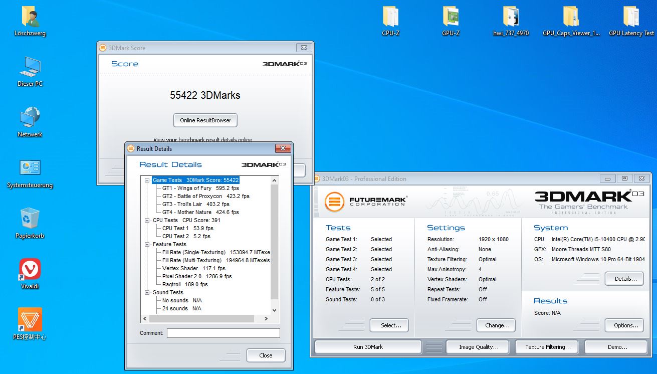 -> Weder World of Tanks noch der WoT enCore Benchmark laufen derzeit auf der MTT S80, egal welche Einstellungen man wählt oder in der preferences.xml manuell setzt.