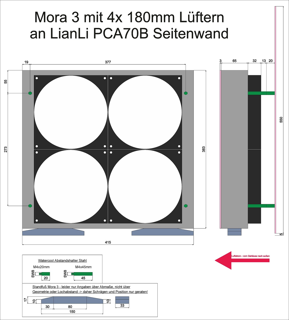 - Seitenwand - Lüfter - Radiator - Blech. Dabei werden 2 Abstandhalter in Reihe angebracht und die Standfüße.