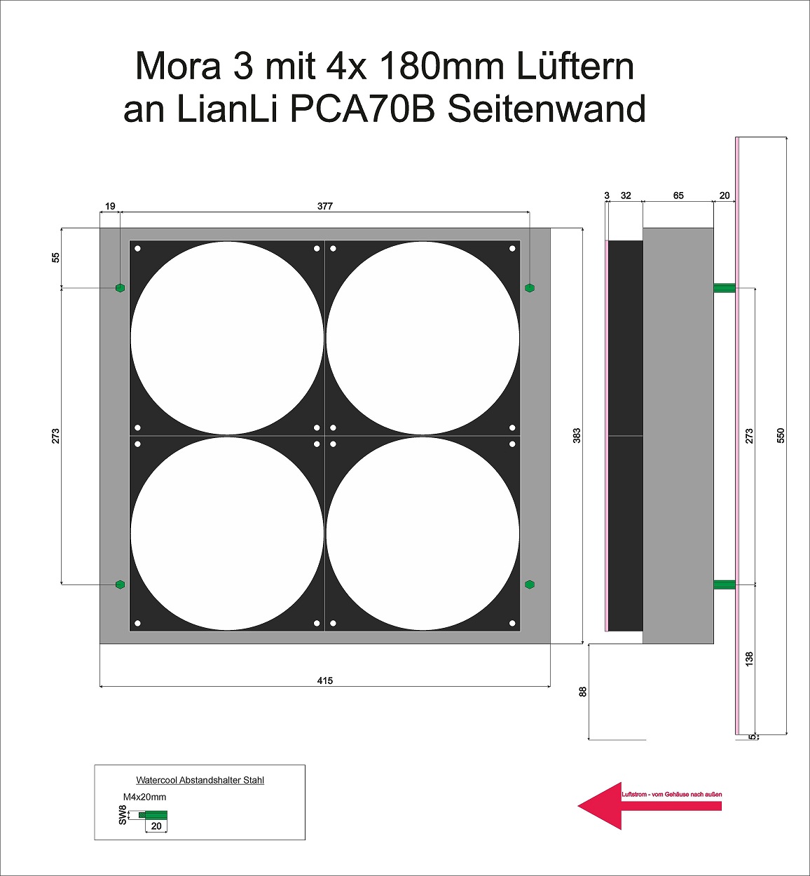 - Seitenwand - Radiator - Lüfter - Blech. Es wird bei dieser Variante nur 1 20mm Abstandshalter verwendet und Standfüße kommen nicht zum Einsatz