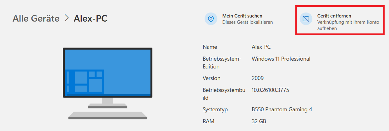 Im MS Konto unter Geräte. Wenn Du dort beim betreffenden Gerät auf "Details anzeigen" klickst, dann siehst Du ganz oben rechts, dass es für dieses Gerät eine Verknüpfung mit dem MS Konto gibt.