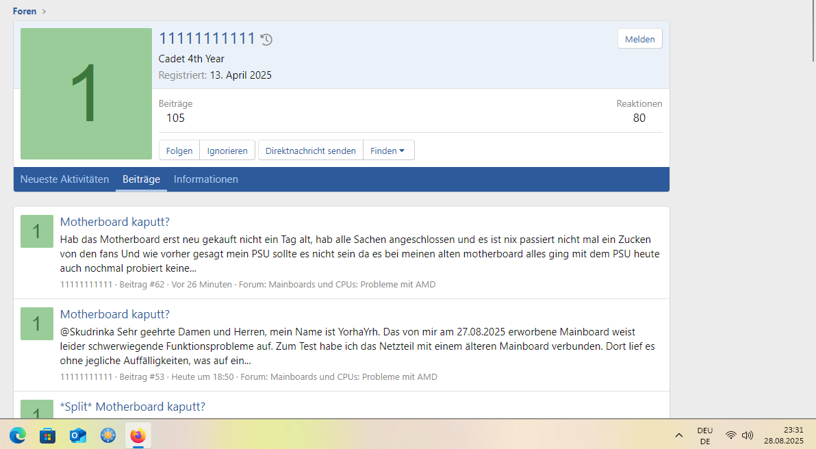 Du kannst doch nicht erwarten das Wir, die Dir mit privater Lebenszeit helfen wollen, uns auch noch Informationen über mehrere Threads hinweg zusammensuchen.11111111111 schrieb:Hätte er die Konversation gefolgt hätte er gesehen das ich ein link zu meinem alten Thema verlinkt habe wo auch mein altes motherboard steht