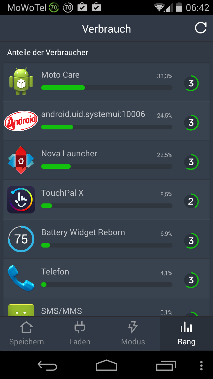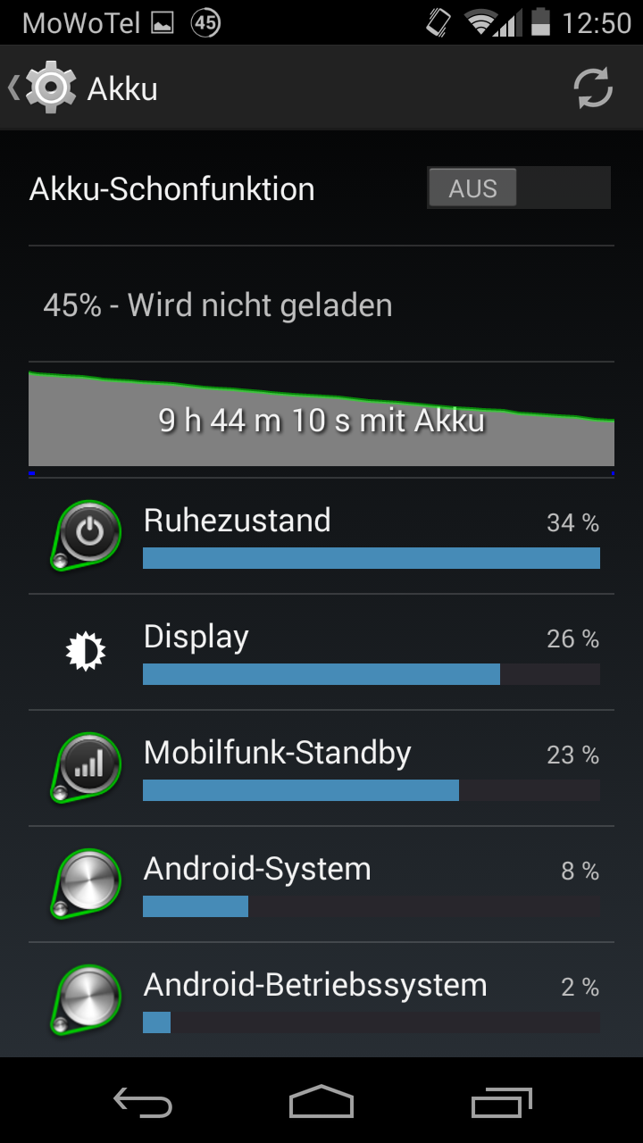 Einmal hatte ich auch seltsamerweise, dass das "Android Betriebssystem" 51% vom Verbrauch ausgemacht hat.