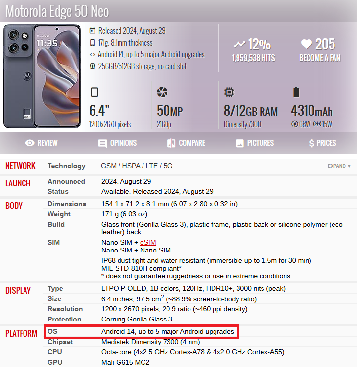 In deinem GSMArena Screenie steht "up to" . Mal schauen was von dem "bis zu" dann übrig bleibt und ob es am Ende nicht doch nur 2-3 sind und dann nur noch Patches.BrollyLSSJ schrieb:wie z.B. das Edge 50 Neo. Das bekommt 5 Android Versionen.