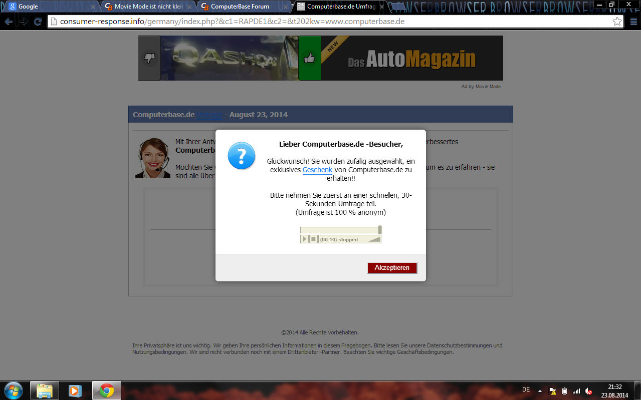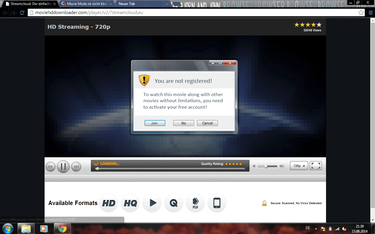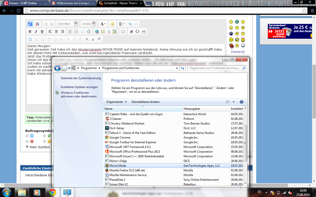 Seit geraumer Zeit habe ich das Virusprogramm MOVIE MODE auf meinem Notebook. Keine Ahnung wie ich es geschafft habe mir diesen Rotz mit runterzuladen, war wohl bei irgendeiner Freeware versteckt.