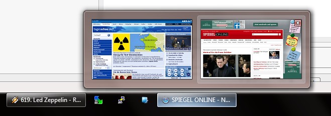 Die Thumbnails verhalten sich exakt genauso wie bei mehreren Fenstern, obwohl es nur ein Fenster ist.