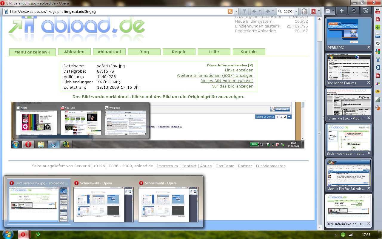 Und AcerXXX hat übrigens Recht: Safari 4.0.3 unterstützt die Windows-7-Taskleistenvorschau für einzelne Tabs auch.
