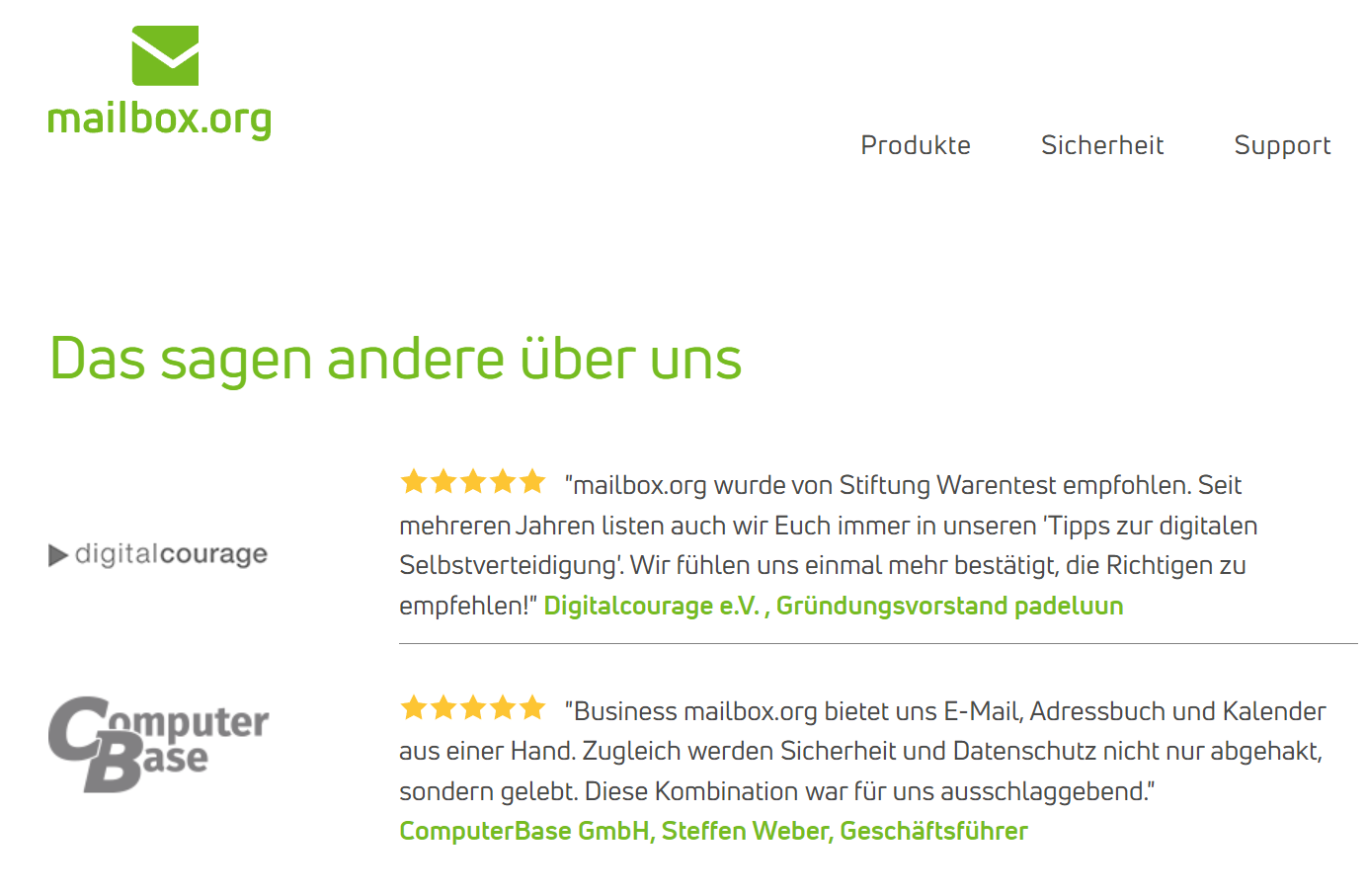 Und je nachdem was du brauchst, sind die tatsächlich eine gute Alternative. Ich bin seit ein paar Jahren da, Mail, Kontakte, Kalender, Aufgaben, Erinnerungen läuft alles gut und über offene Standards (IMAP, CalDav, CardDav). Im Gegensatz zu Google hatte ich hier nie ein Problem, die irgendwo einzubinden, egal ob Outlook, TB, Apple Mail / Kontakte / Kalender usw.