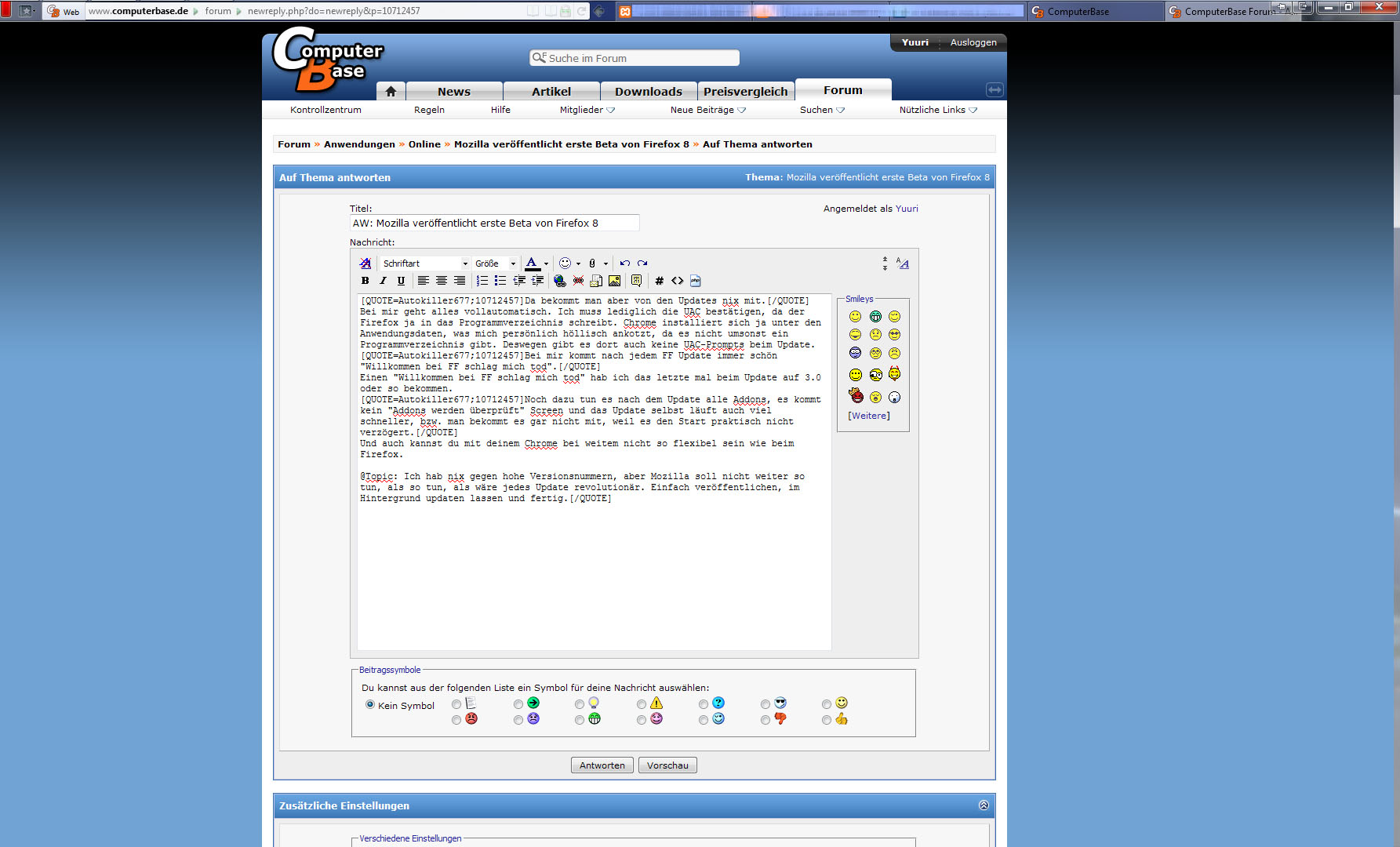 CB hat wirklich sehr viele aktive Mitglieder. Jedenfalls so viele, dass sich auf absehbare Zeit bei jeder News zum Firefox reichlich neue Spezialisten zu finden, die sich über die Versionspolitik von Mozilla brüskieren. (gut, passt nicht in die Liste, aber dieser Kommentar ist sehr passend! +1 von mir)