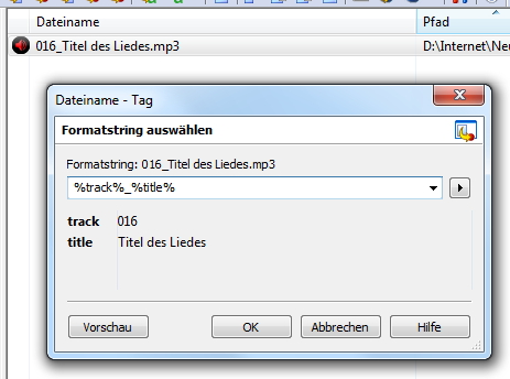 kennt jemand ein Tool, welches anhand des Dateinamens einer MP3-Datei (z.B. 016_Titel des Liedes.mp3) die jeweilige MP3-Datei in Ihren Details (Titelnummer, Liedtitel) anpasst, so dass beim Importieren in iTunes der korrekte Titel und die korrekte Titelnummer vergeben wird? Die MP3-Dateien haben noch keinerlei Tags, nur den jeweiligen Dateinamen.