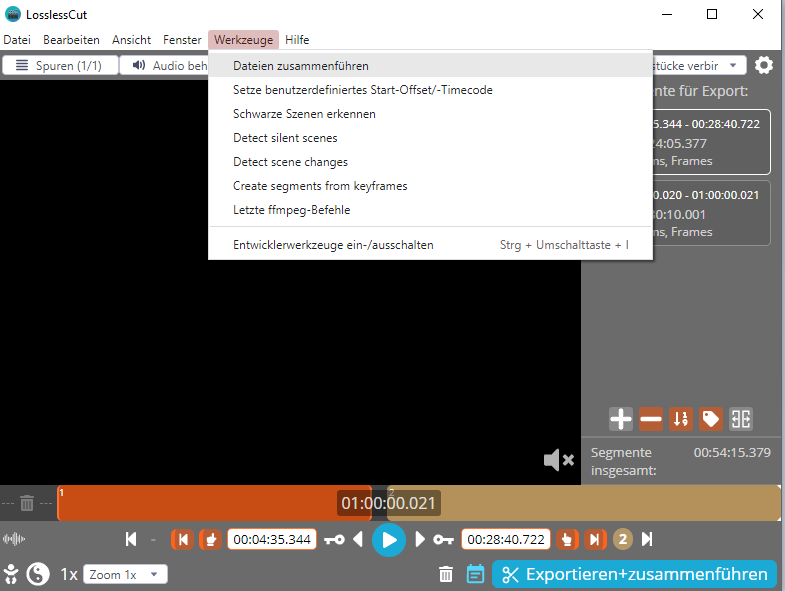 Das einzige, was schon funktioniert, ist die automatische Erstellung einer AAC-Datei aus der MP4 durch ffmpeg.exe, die ich runtergeladen, und den Pfad im Programm angegeben habe.