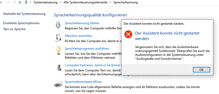 Wenn ich Spracherkennung starten will kriege ich folgende Meldung: