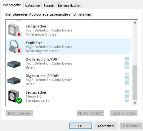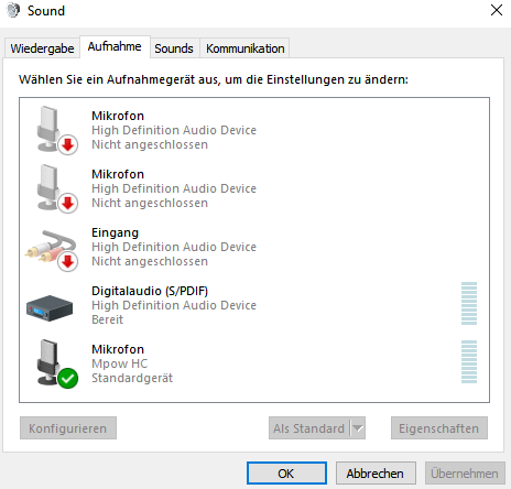 Haste das Mikrofon denn auch als Std. Aufnahmegerät angegeben?