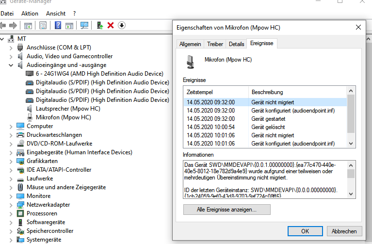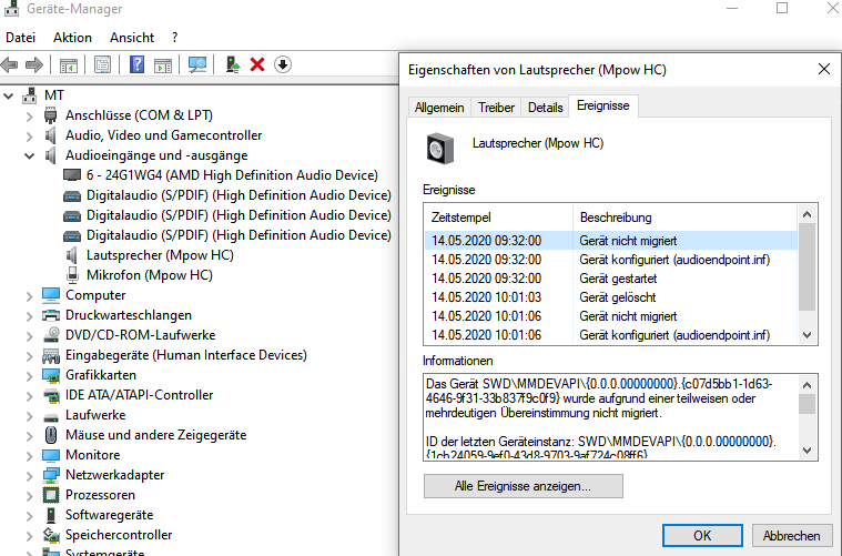Beim einrichten über den Gerätemanager kriege ich folgende Meldungen:
