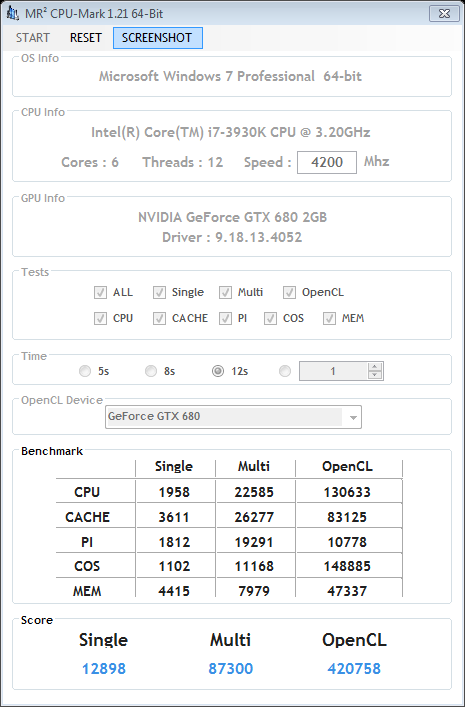 Die Ergebnisse aus Version 1.2 sind mit älteren Versionen nicht mehr vergleichbar, daher bitte nur posten wenn ihr mit der neuen Version testet.