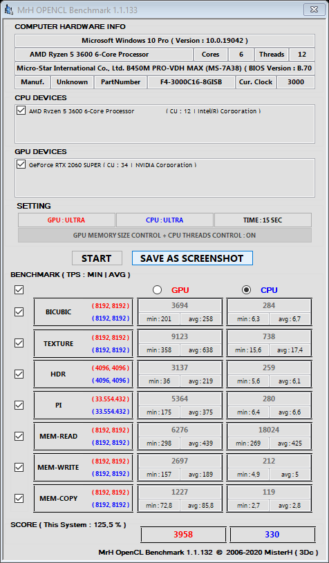 Anmerkung: Beim Test von GPU und CPU auf "Extreme", bricht der CPU Test von selbst ab, bei einer Wiederholung ebenso, hatte zwar in homöopathischen Dosen was berechnet, aber dann ging es nicht mehr weiter, sobald es zu den MEM Tests ging - habe da nichts weiter angeklickt oder so, daher poste ich die Ergebnisse so, wie sie generiert wurden: