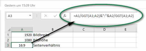 wie kann ich in Excel einen Bruch (z.B. 16/9) als Verhältnis (16:9) darstellen?