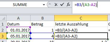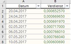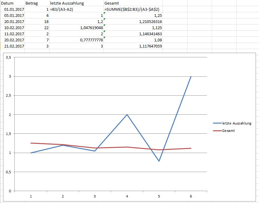 Die Auszahlung erhalte ich aber unregelmäßig, wie ersichtlich ist.