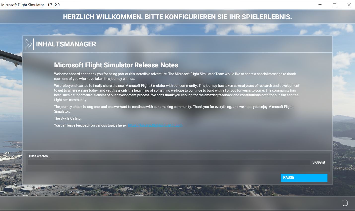 Zuerst wird eine Windows-App (ca. 1 GB) im Standard-Programm (App) Verzeichnis installiert - in der Regel "C:\...". Danach wird über diesen Launcher das Spiel gestartet, wobei im folgenden Prozess der Installationsort angergeben wird. Anschließend erfolgt der Download der Spiel Grunddaten ca. (geschätzt) 90 -105 GB, je nach Spielversion. Nach Fertigstellung der Installation - was dauert!! - startet man regulär, wobei das Spiel immer an dieser Stelle nach Updates sucht (Startscreen mit blauem Ladebalken) und diese eigenständig herunterlädt und installiert. Auch das kann eine ganze Weile dauern und den Anschein erwecken, das Spielhängt!